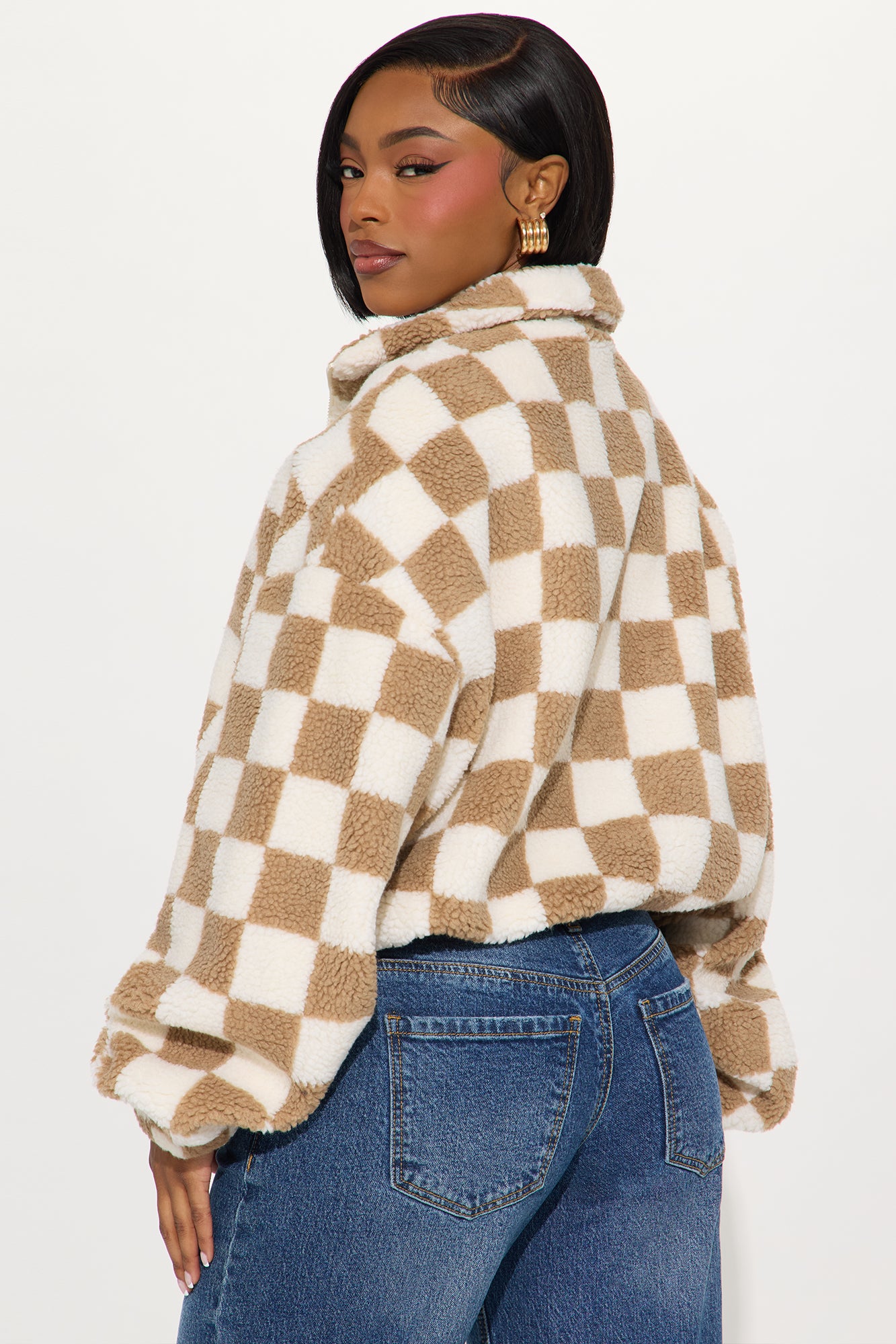 Make Your Move Checkered Sherpa Jacket - Brown/combo
