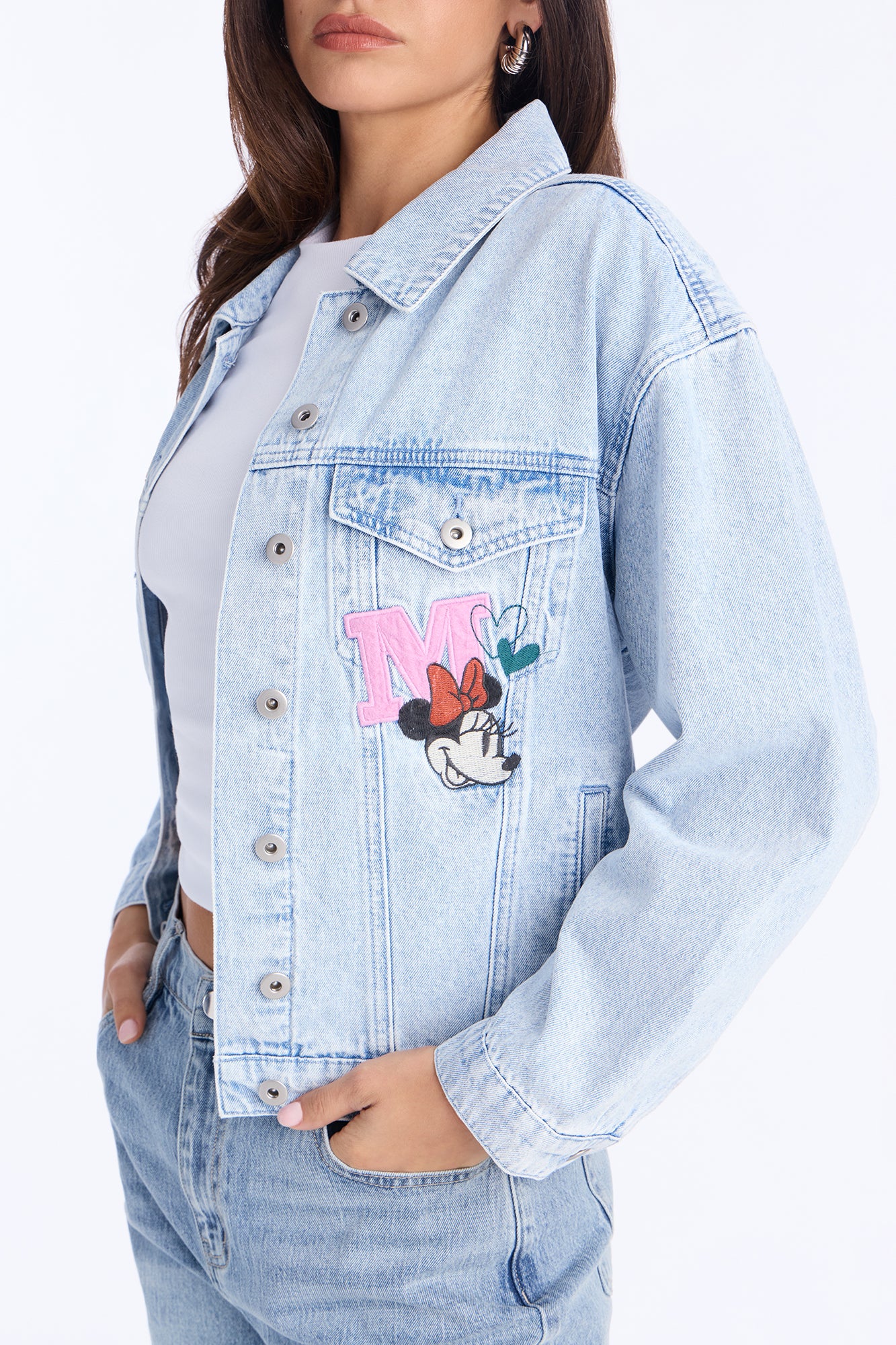 • Mickey and Minnie Embroidered Denim Jacket - Medium Wash