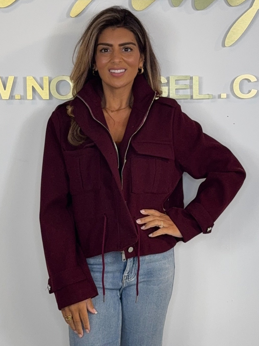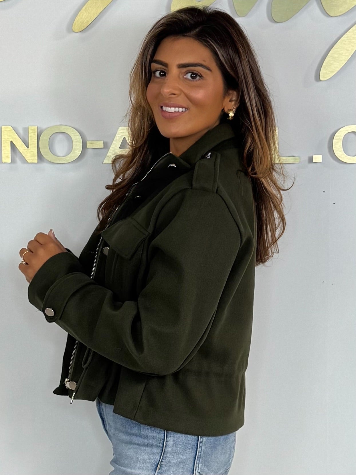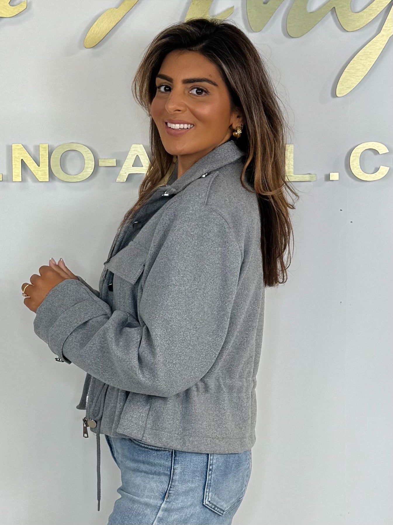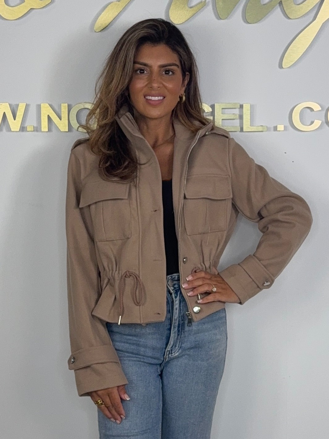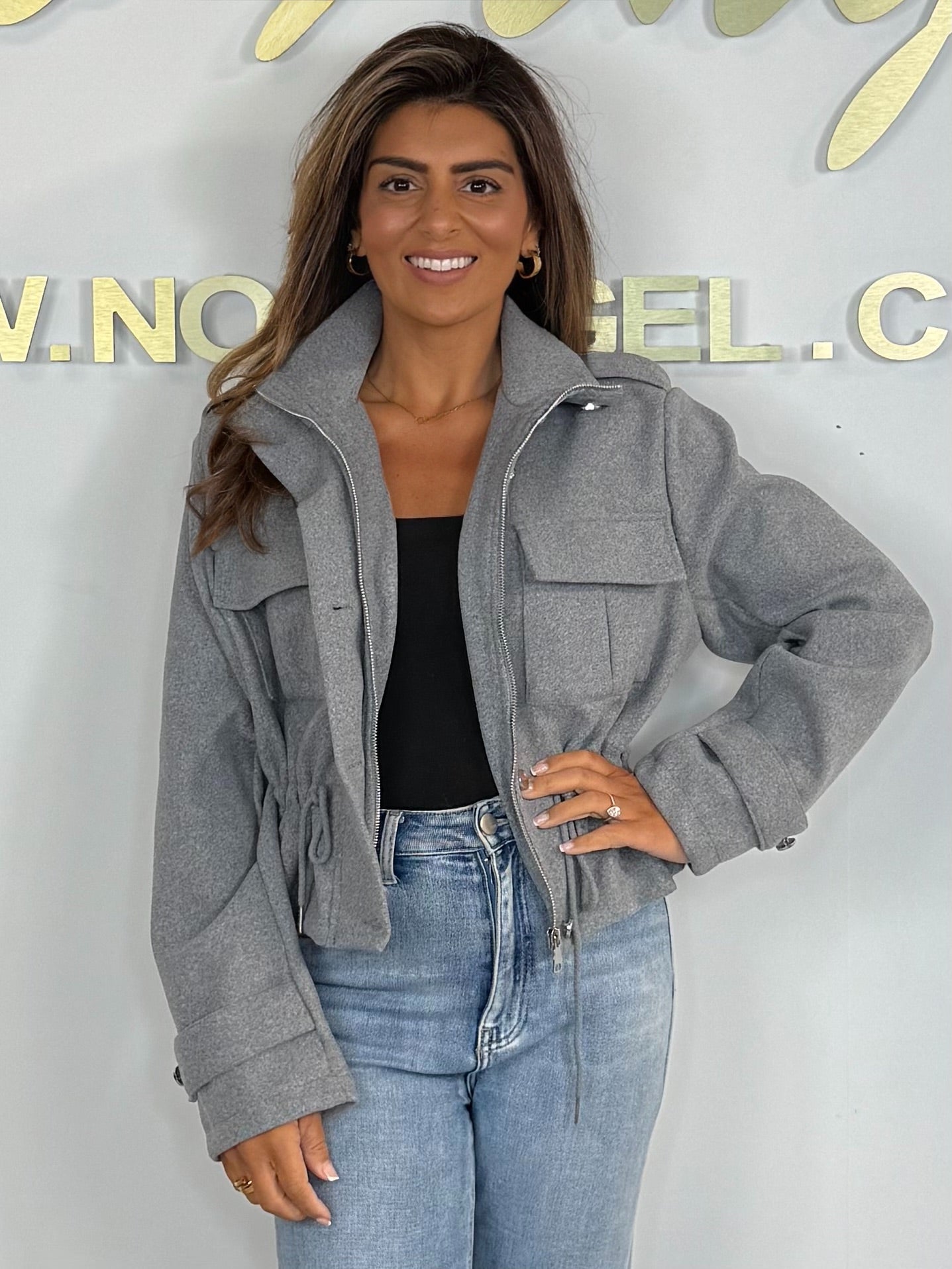Military Drawstring Zip Up Bomber Jacket