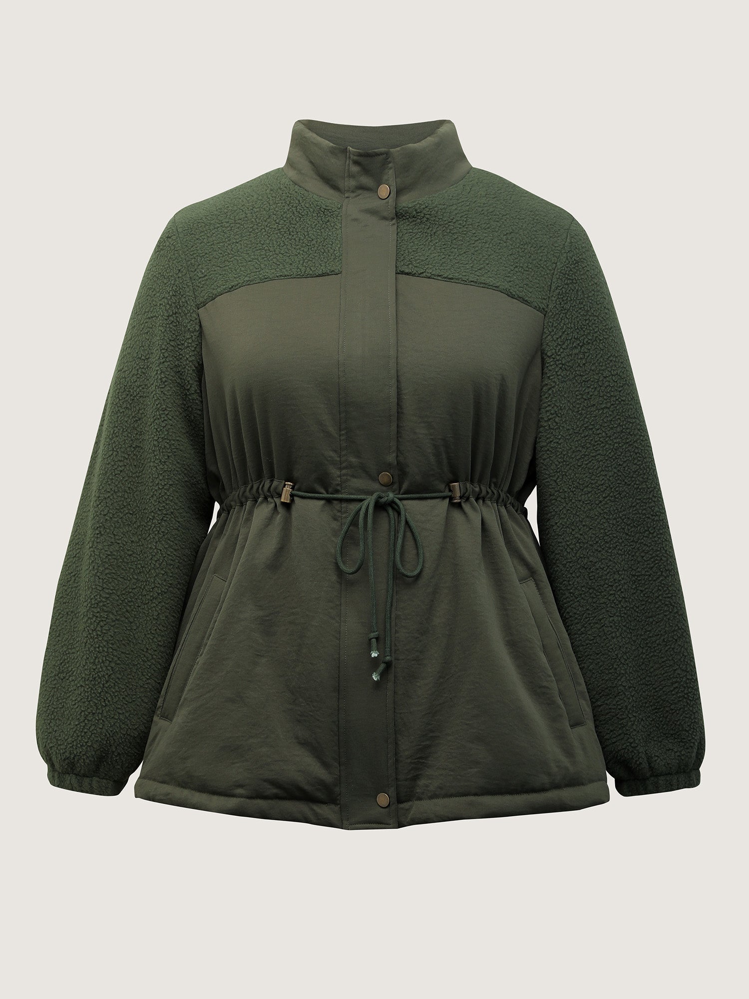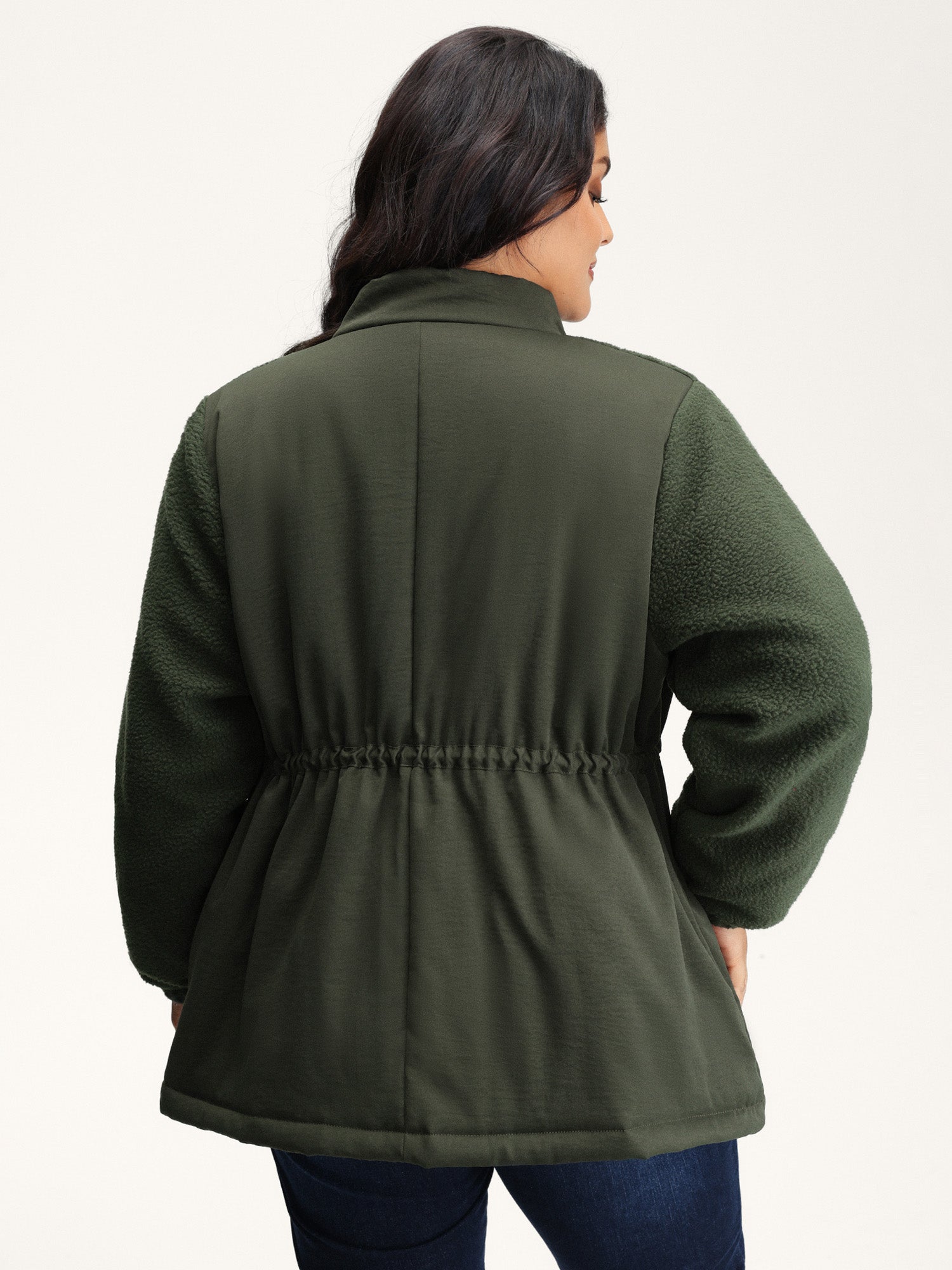 Mixed Fabric Waist Drawstring Quilted Jacket