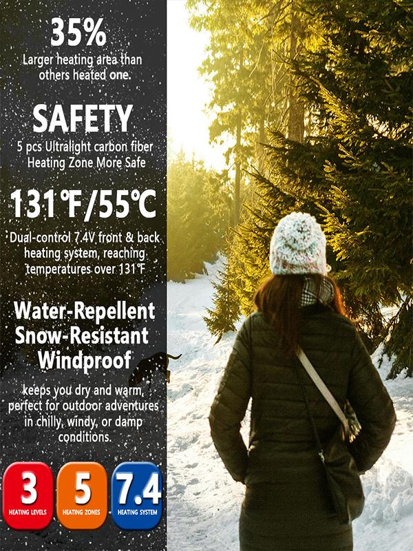 Premium Material: This heated jacket is made from 100% polyester fiber, offering both softness and durability. It provides exceptional warmth and comfort, ensuring you stay cozy in cold weather.·