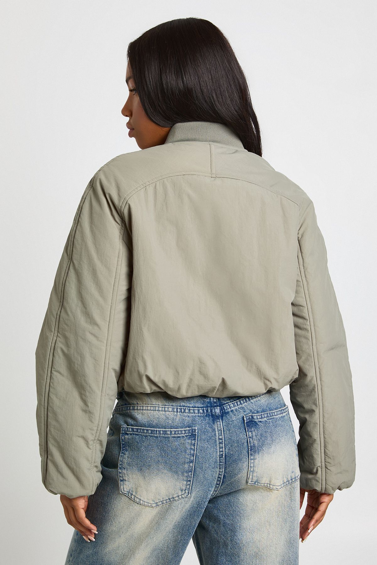 - Oversized bomber jacket with a relaxed, contemporary silhouette