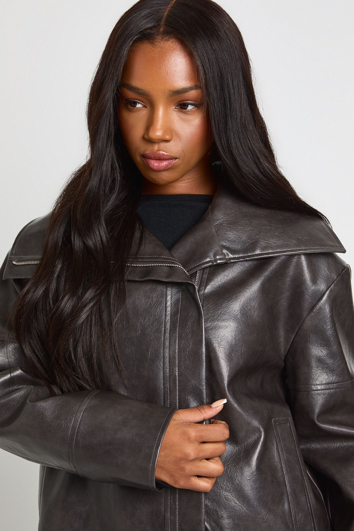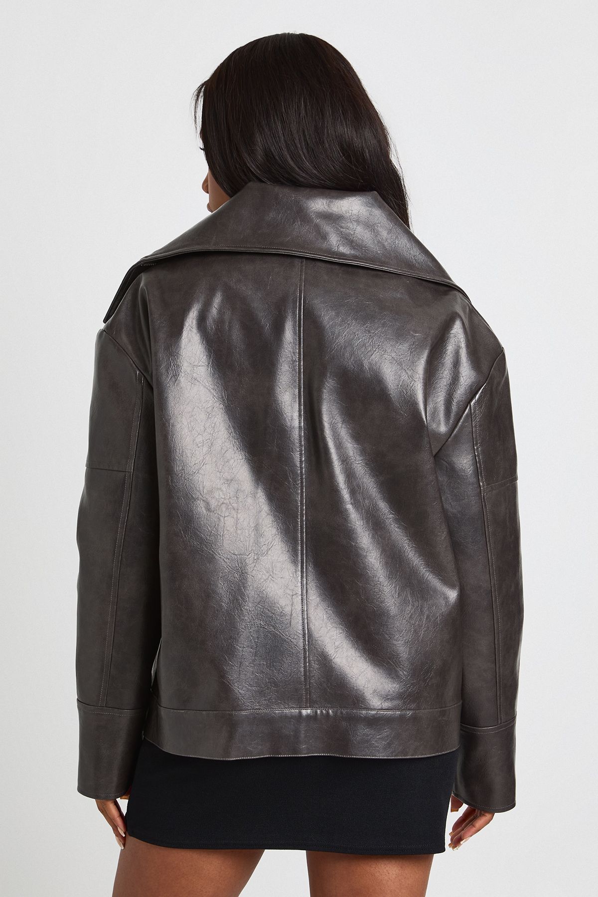 - Make a statement in this eye-catching Oversized Collar PU Jacket from Boohoo. The dramatic collar creates an instant fashion-forward look that transforms even the simplest outfit. Style it as seen with a little black dress and knee-high boots for an effortlessly chic daytime ensemble, or pair with your favourite jeans and trainers for casual coffee dates. The relaxed fit makes this jacket ideal for layering over jumpers when the temperature drops, while the sleek finish adds a touch of urban sophistication to your everyday wardrobe. Perfect for unpredictable British weather, this jacket works brilliantly for family gatherings, weekend shopping trips, or casual meet-ups with friends. The contemporary silhouette offers a modern twist on the classic biker jacket, making it a versatile piece you'll reach for time and again throughout the seasons.