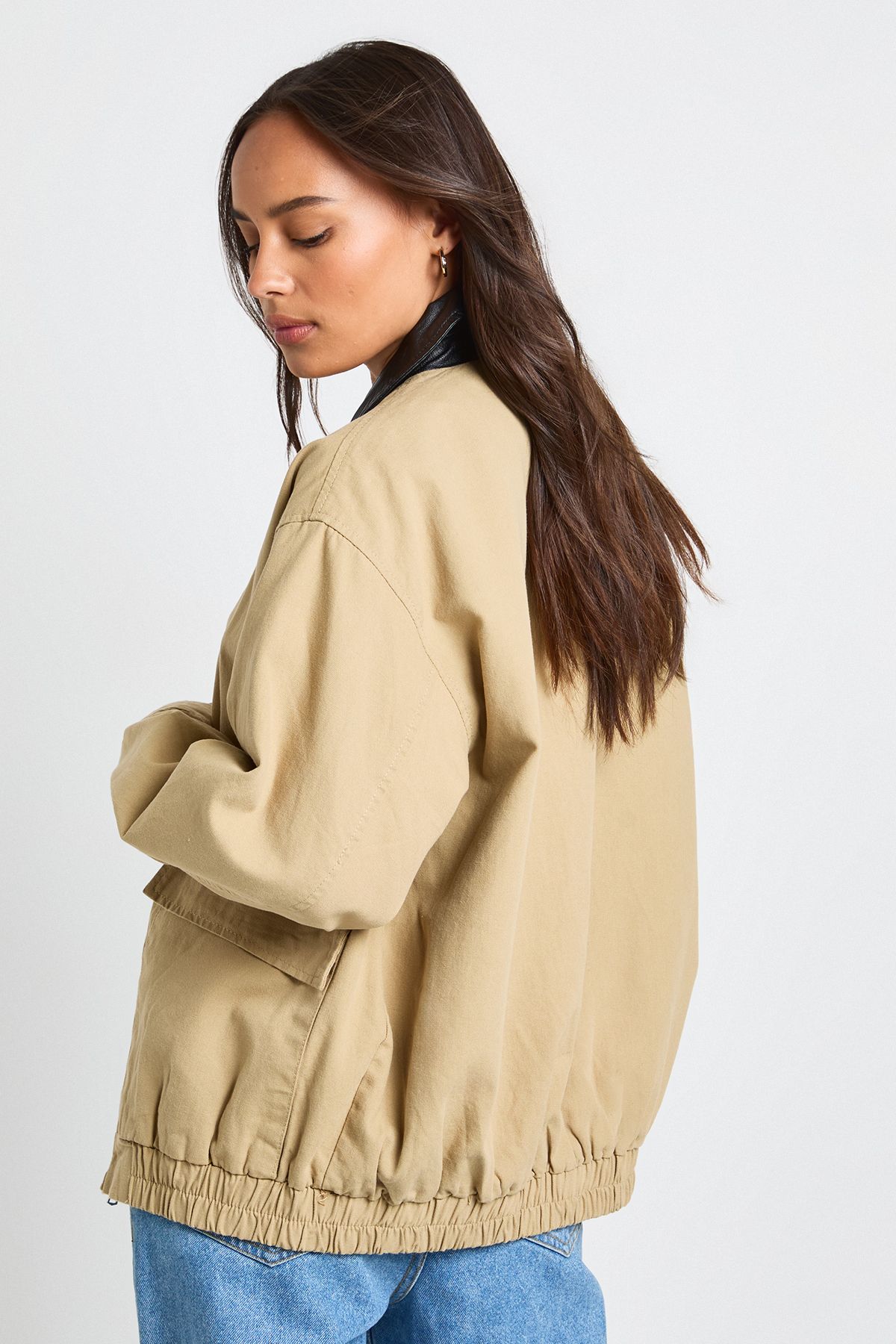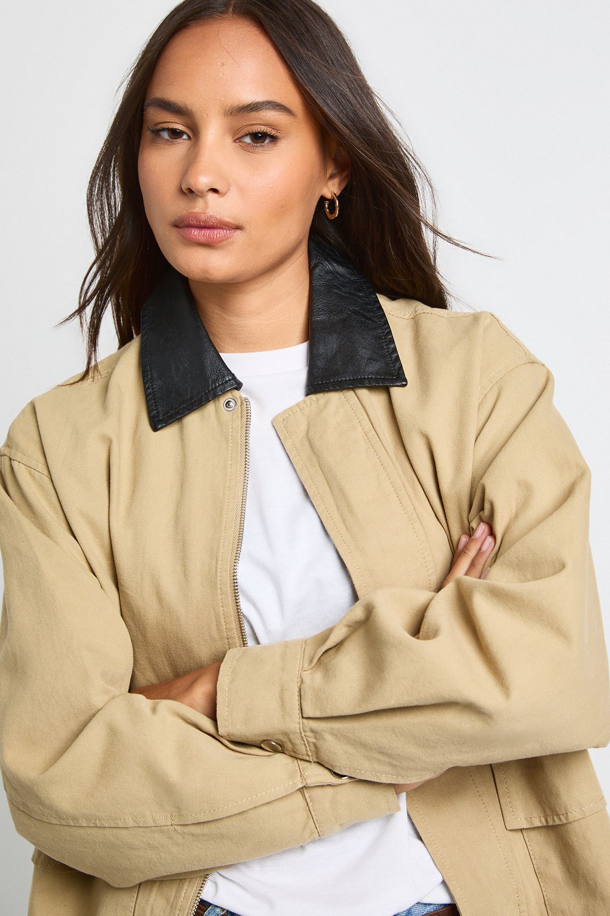- Make a statement with this Oversized Contrast Collar Jacket from Boohoo, a versatile piece that seamlessly blends casual comfort with on-trend styling. The relaxed fit creates a laid-back silhouette that's perfect for everyday wear, whilst the distinctive contrast collar adds character to your outfit. Style with your favourite denim jeans and a simple white tee for an effortlessly cool daytime look, or throw over a hoodie with wide-leg trousers and trainers for weekend coffee runs. This jacket works brilliantly for casual gatherings and family events where comfort meets style. The cotton construction ensures breathability, making it an ideal transitional piece for unpredictable British weather. Complete the look with a baseball cap and minimal jewellery for an understated finish that captures that coveted street-style aesthetic.