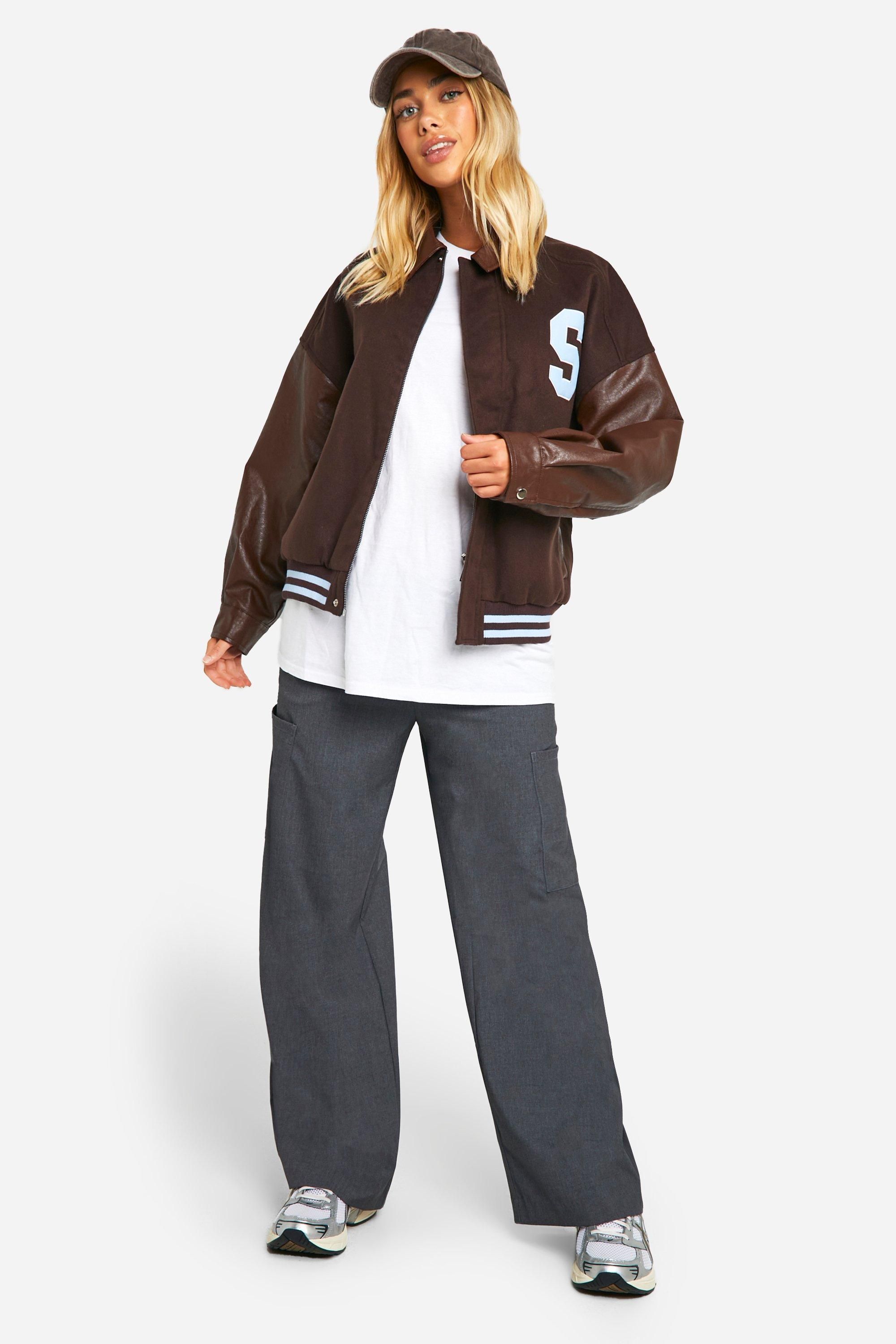 - Versatile zip-up front for adjustable wear Make a bold statement with this eye-catching oversized bomber jacket. The wool-look body paired with faux leather sleeves creates a striking contrast that's sure to turn heads. Perfect for casual outings, this jacket effortlessly combines comfort with street-style edge. Layer it over a simple white tee and wide-leg trousers for an effortlessly cool look, or throw it on over a dress to add a touch of urban chic to your ensemble. The versatile design makes it ideal for various casual occasions, from coffee dates to weekend shopping trips. For a sporty twist, pair it with your favourite trainers and a baseball cap. The oversized fit allows for easy layering, making it a great transitional piece for unpredictable British weather. Whether you're heading to a casual family gathering or meeting friends for a laid-back evening out, this bomber jacket will keep you looking stylish and feeling confident.