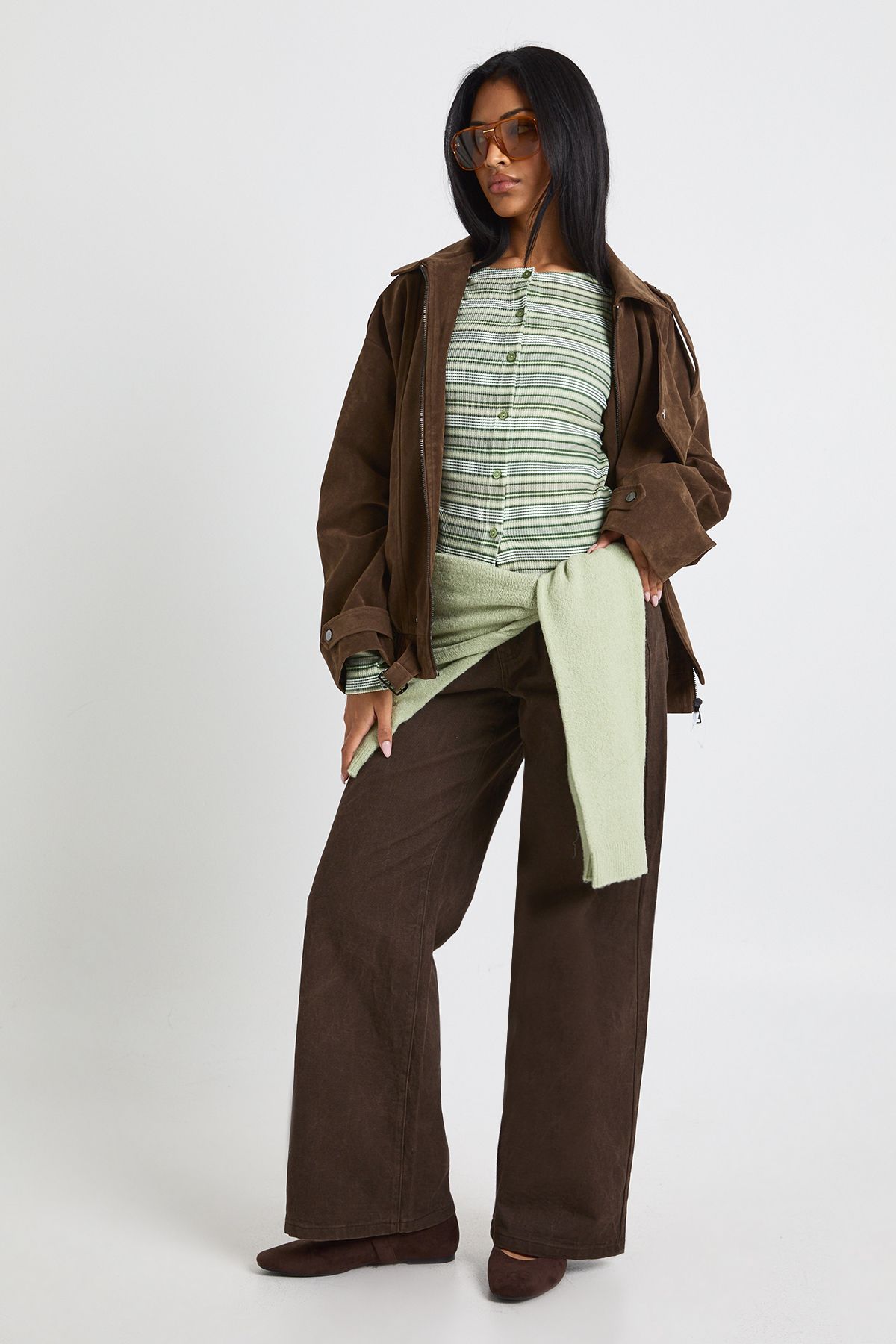 - Practical side pockets for everyday functionality Make a bold statement with this oversized faux suede jacket that combines relaxed styling with urban edge. The generous proportions create a fashionable silhouette that works brilliantly layered over both casual and smart-casual ensembles. Style as seen with a striped top and wide-leg trousers for a contemporary daytime look, or throw over a simple tee and jeans combo for instant weekend chic. The versatile design transitions seamlessly from coffee dates to casual gatherings, whilst the textured finish adds interest to your autumn-winter wardrobe. For cooler days, layer over a lightweight jumper and pair with chunky trainers and your favourite crossbody bag. This jacket is a true wardrobe hero that will become your go-to for effortless, on-trend styling throughout the seasons.