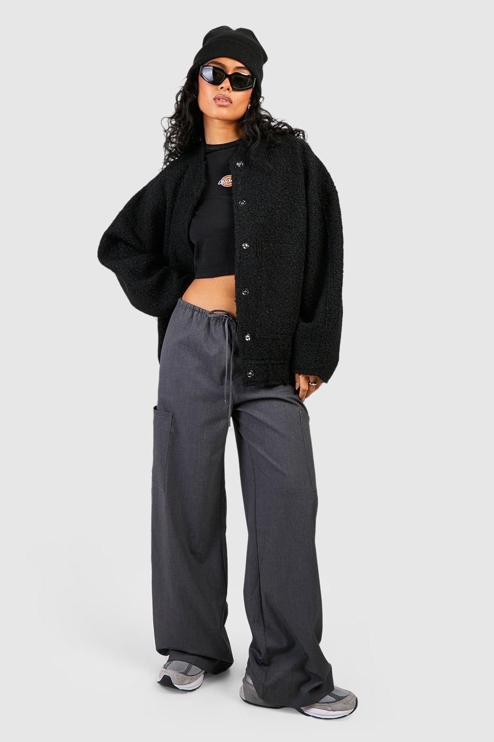 - Make a bold statement with this oversized wool bomber jacket, perfect for the fashion-forward woman who values both style and comfort. The relaxed fit allows for easy layering, making it ideal for transitional weather. Style it with wide-leg trousers and trainers for a casual daytime look, or throw it over a crop top and high-waisted jeans for an evening out with friends. The versatile design lends itself to various occasions, from family gatherings to casual outings. For a more polished appearance, pair it with a sleek turtleneck and tailored trousers. The textured fabric adds an interesting visual element, while the practical pockets and ribbed detailing enhance its functionality. This jacket is a must-have piece for creating effortlessly cool ensembles that reflect the latest trends without compromising on comfort.