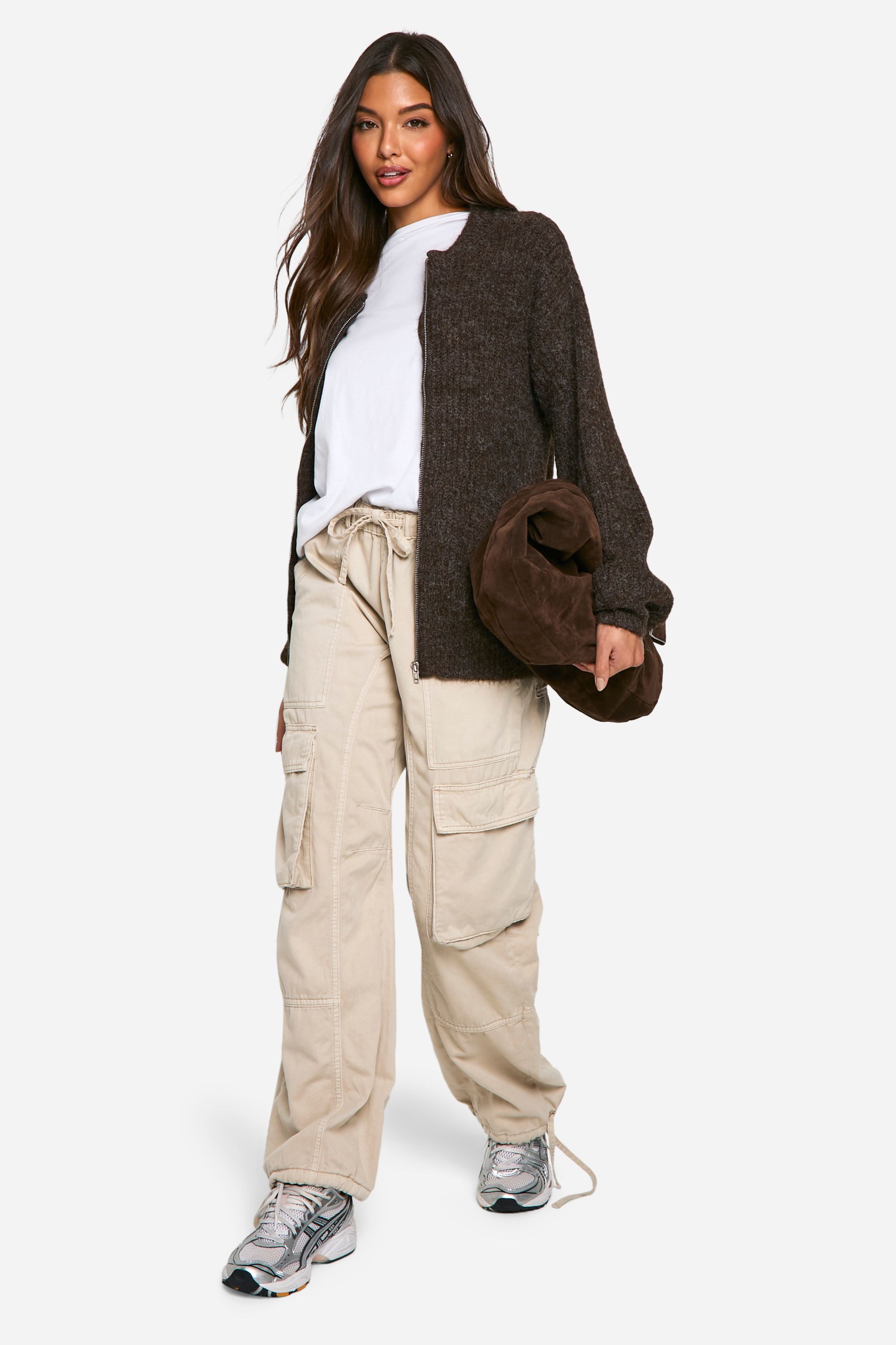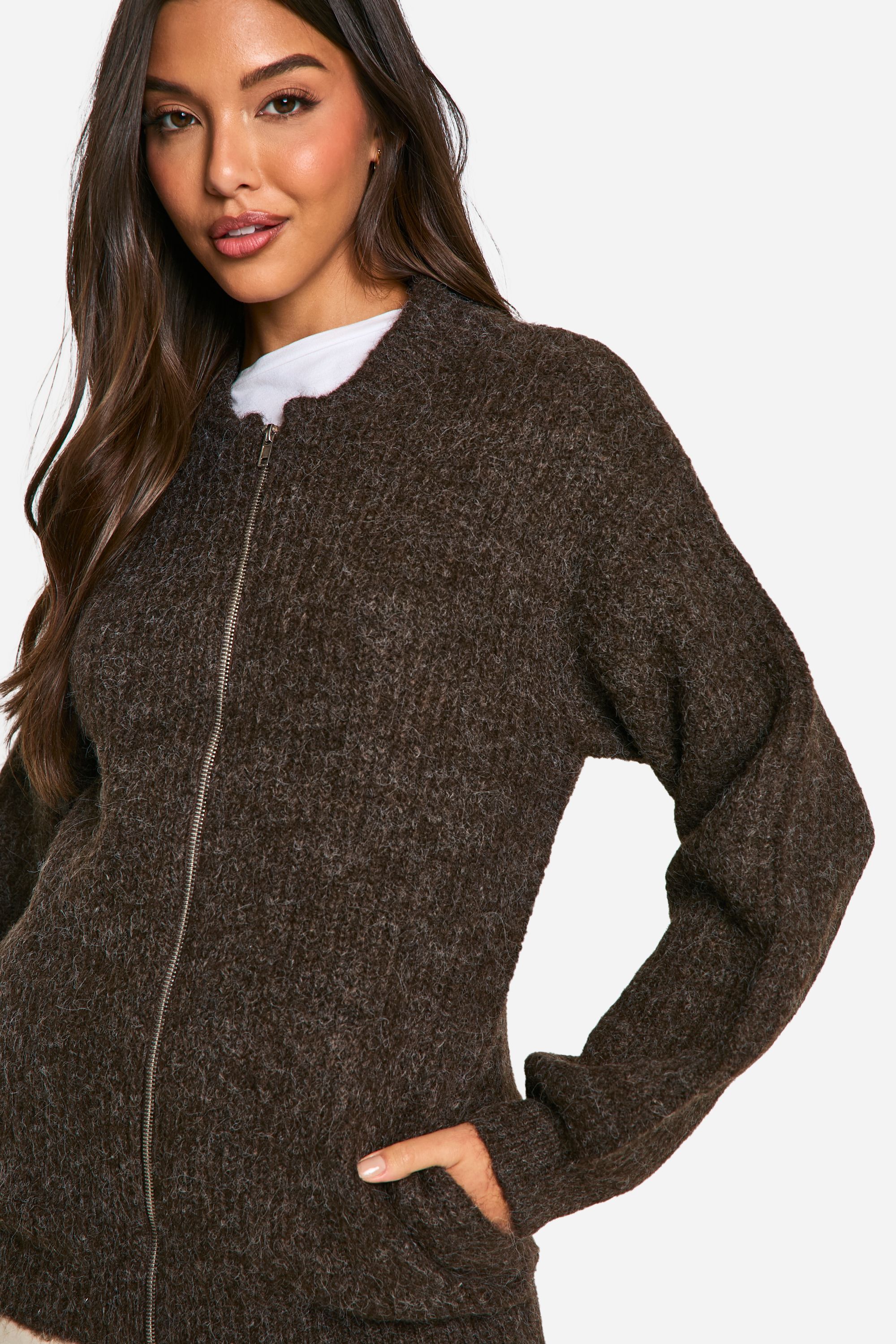 Oversized Zip Through Knitted Bomber Jacket