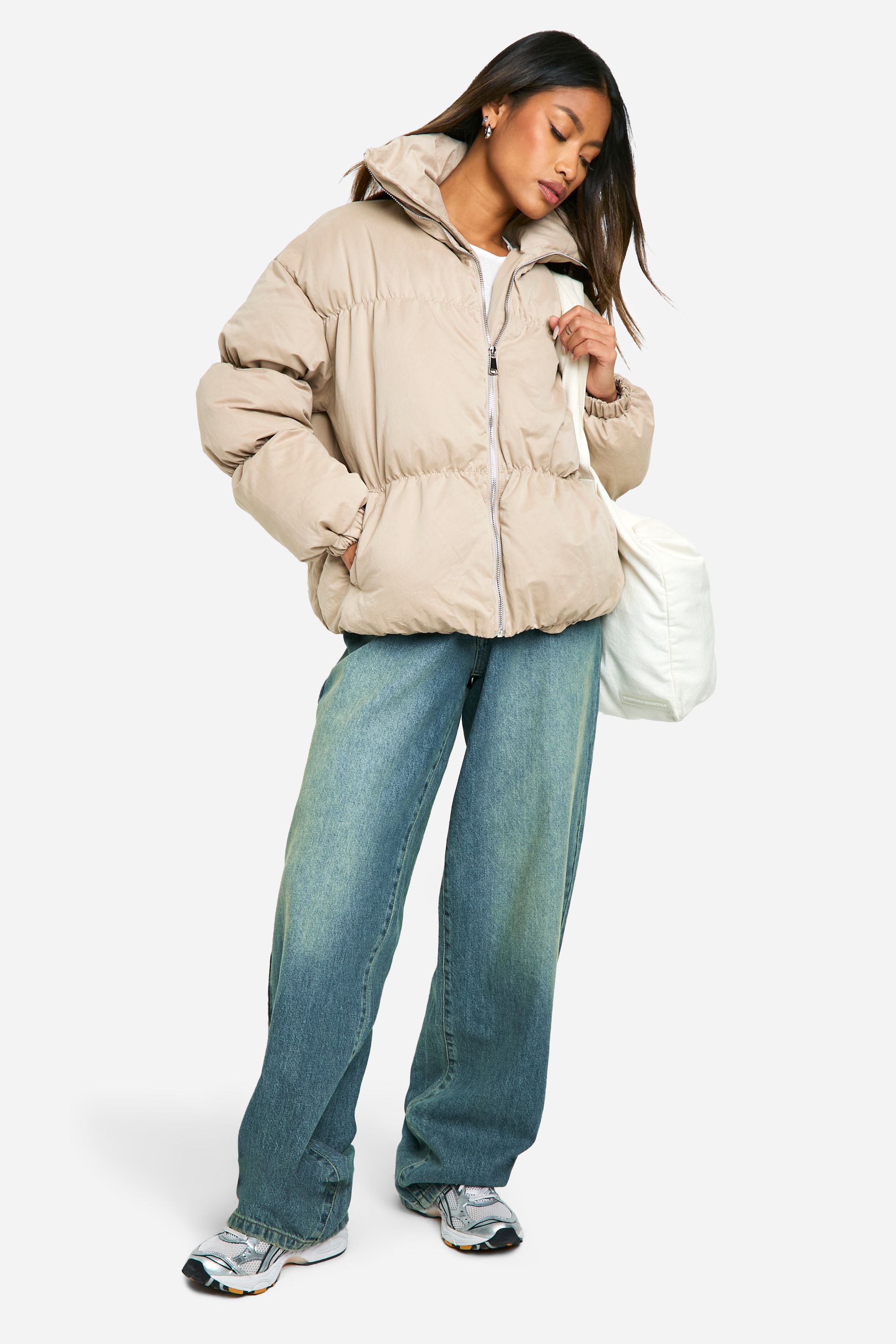 - Embrace the chilly weather in style with this on-trend quilted jacket from Boohoo. Perfect for those who want to stay cosy without compromising on fashion, this piece is ideal for casual outings and laid-back gatherings. Style it with wide-leg jeans and trainers for a relaxed weekend look, or throw it over a jumper dress and boots for a chic autumn ensemble. The oversized fit allows for easy layering, making it a versatile choice for unpredictable British weather. Whether you're heading to a family lunch or meeting friends for coffee, this jacket will keep you warm and stylish. Its neutral tone ensures it pairs well with various outfits, making it a go-to piece in your wardrobe for seasons to come.