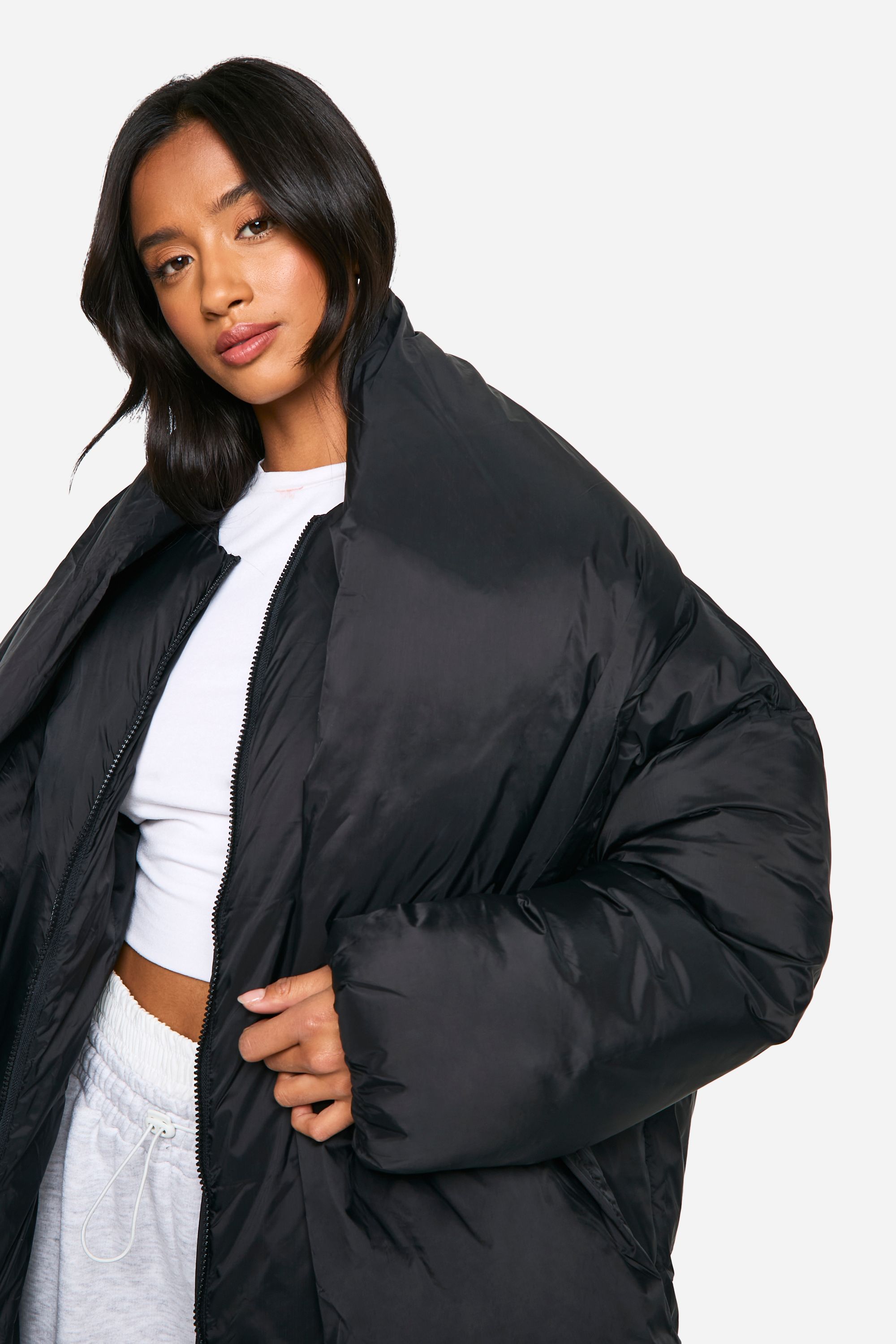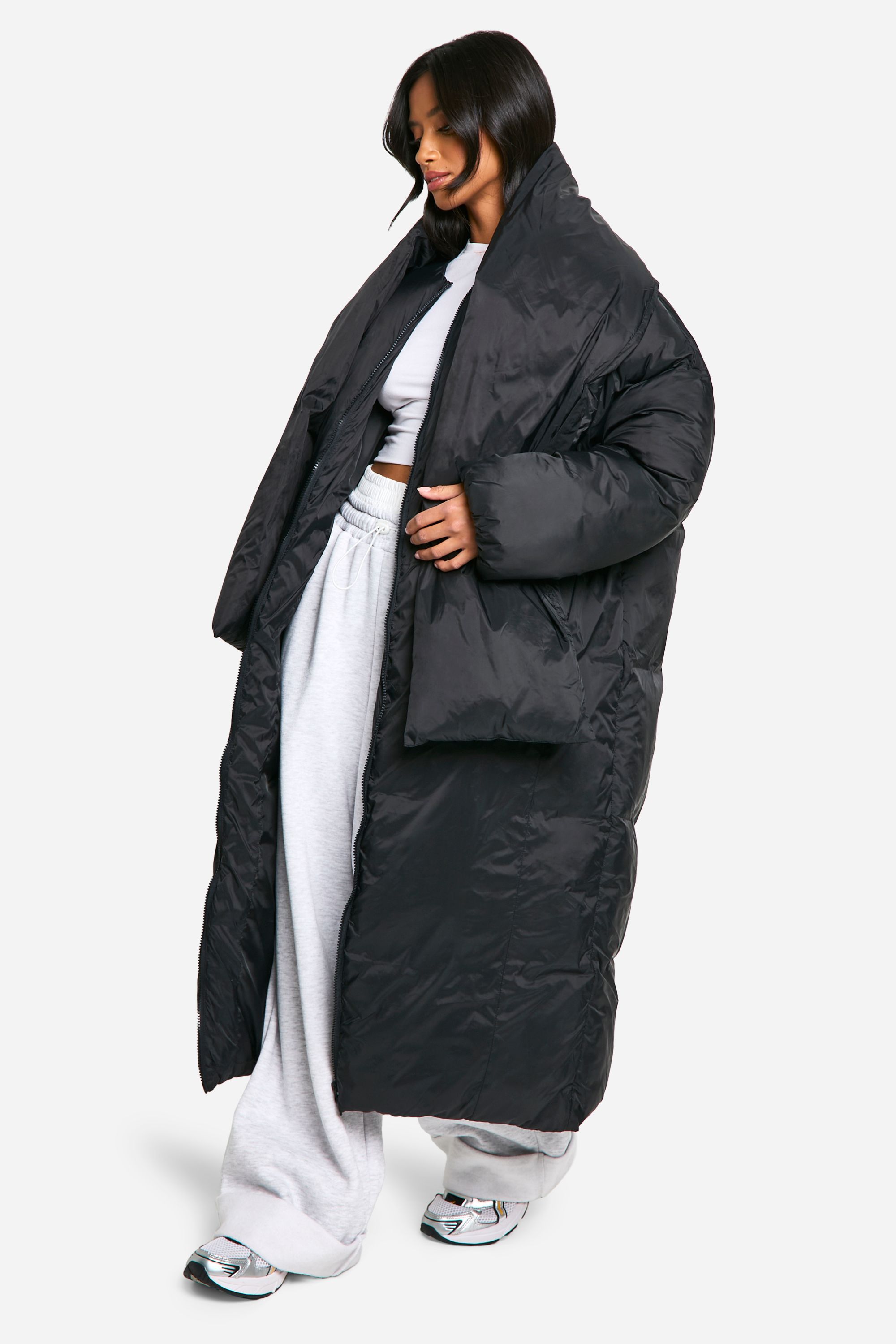 - Oversized longline puffer coat for maximum warmth