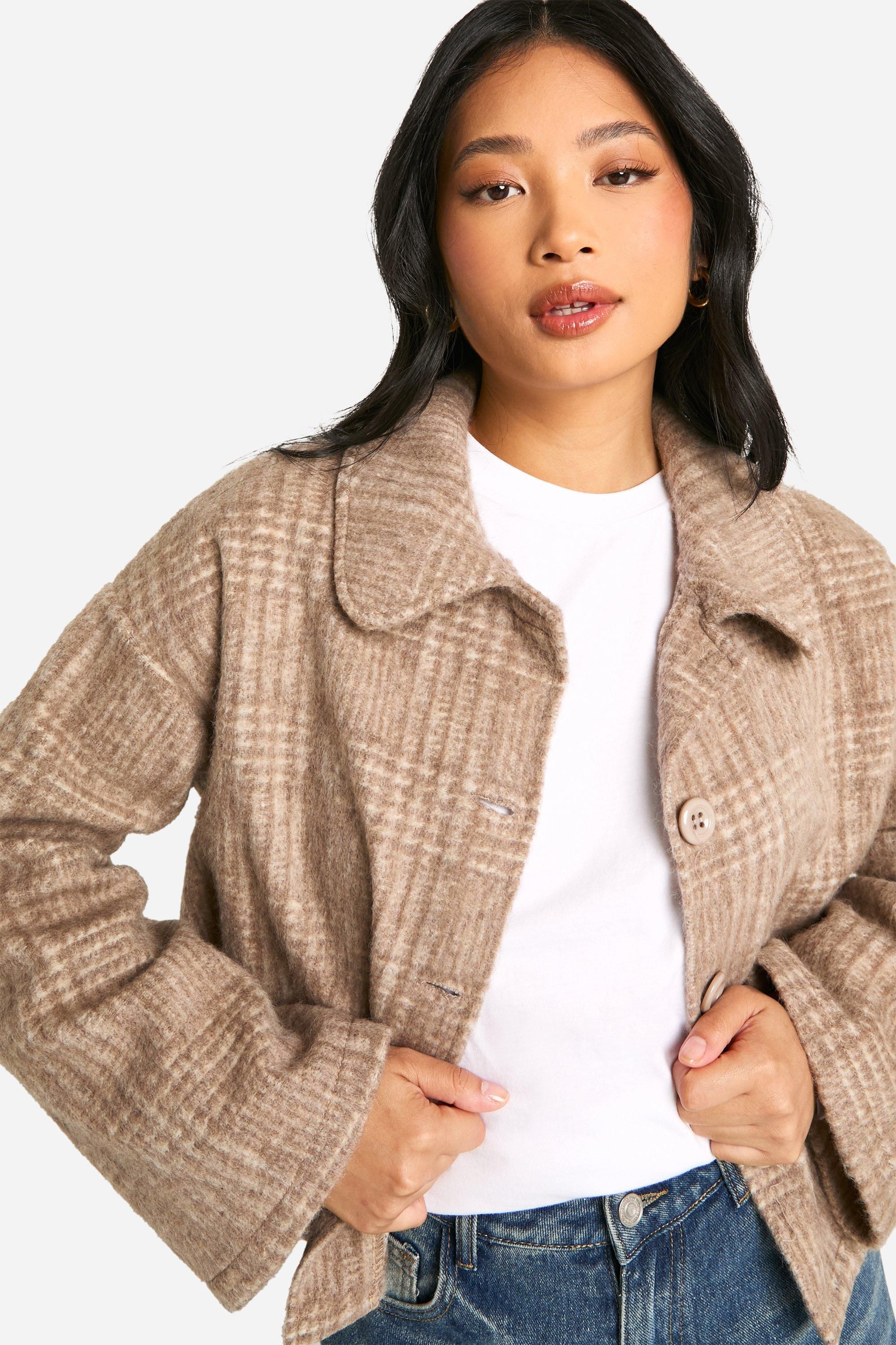 - Embrace the classic charm of this petite checked jacket, a versatile piece that seamlessly blends comfort with style. The wool-look fabric offers a cosy feel, making it ideal for transitional weather. Style it with a crisp white tee and wide-leg jeans for a casual day out, or layer it over a fitted dress for a smart-casual ensemble. The cropped silhouette is particularly flattering on petite figures, creating a balanced proportion. For a trendy twist, roll up the sleeves and accessorise with delicate gold jewellery. This jacket is a perfect choice for family gatherings, weekend brunches, or casual office days. Its timeless design ensures it will remain a wardrobe staple for seasons to come, offering endless styling possibilities for the fashion-forward Boohoo girl.