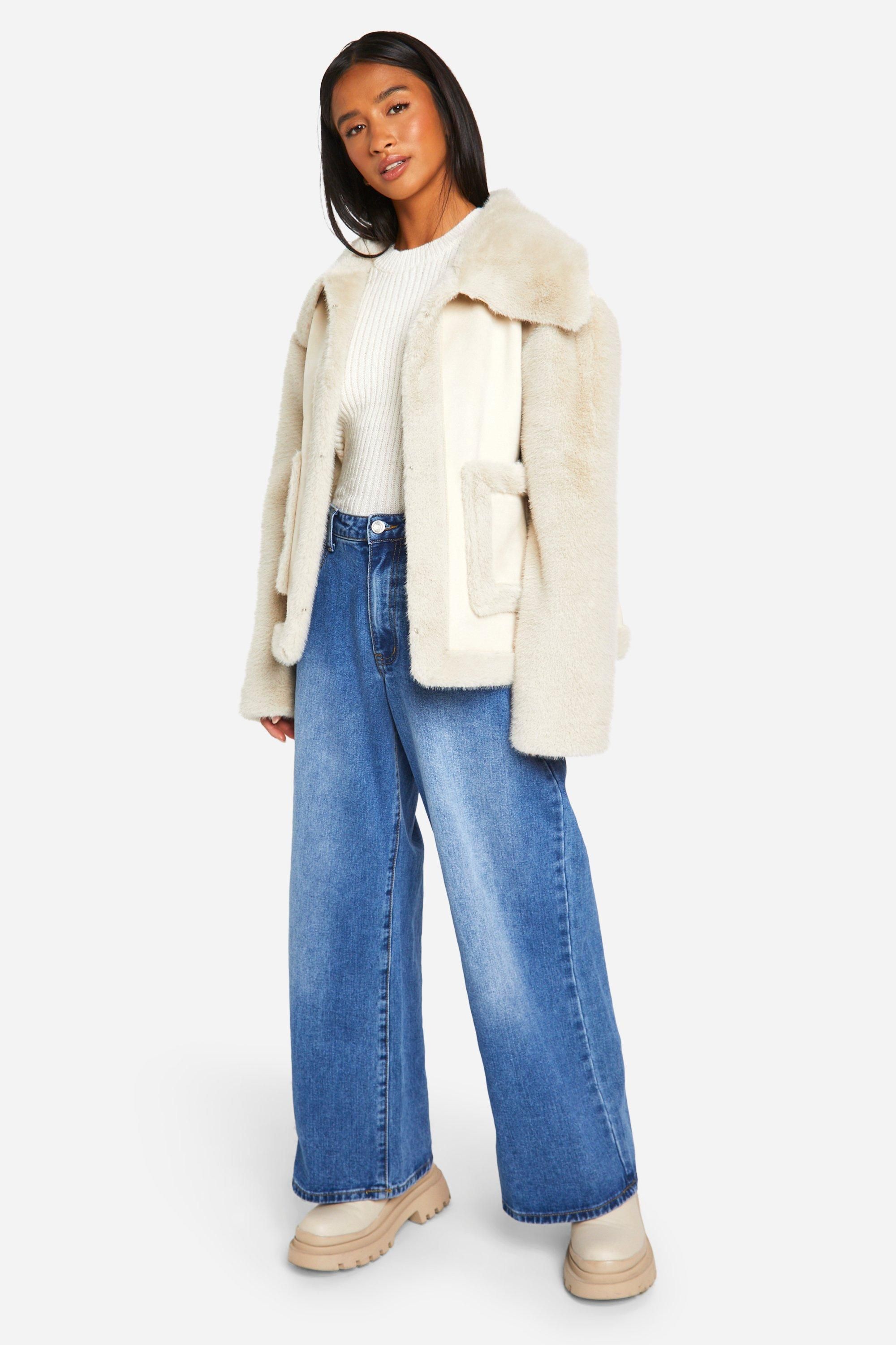 - Versatile open front design Make a bold statement with this petite kurze Kunstfell-Jacke from Boohoo. This eye-catching piece is designed to turn heads and keep you snug during your night-time adventures. The cropped silhouette is ideal for petite frames, allowing you to showcase your favourite outfit underneath. Style it with a ribbed white jumper and wide-leg jeans for a chic contrast of textures. When heading out for drinks, pair it with a sleek bodycon dress and strappy heels to create a look that's both glamorous and edgy. The versatile open front allows for easy layering, making it a perfect choice for unpredictable British weather. Whether you're meeting friends at a trendy bar or dancing the night away at a club, this jacket will ensure you stand out in the urban nightlife scene while staying comfortably warm.