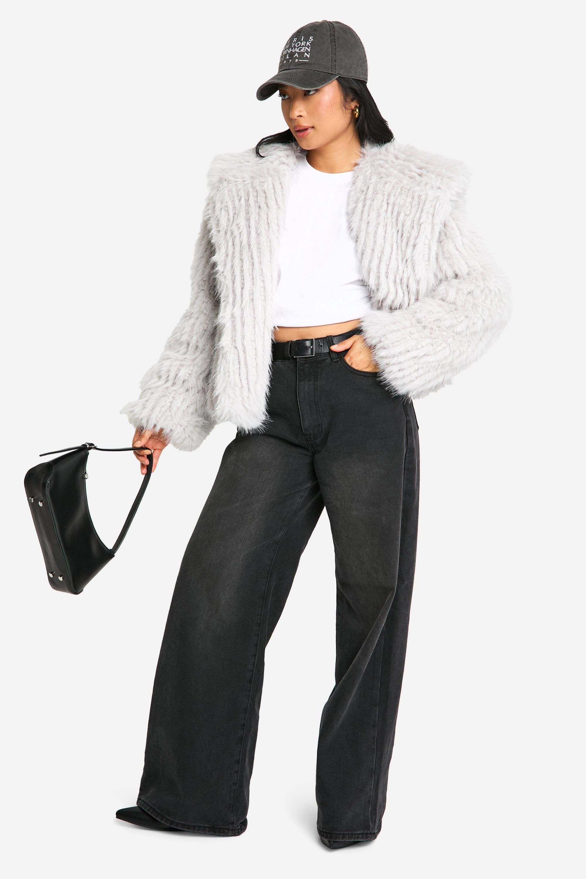 • Oversized faux fur jacket for a bold statement