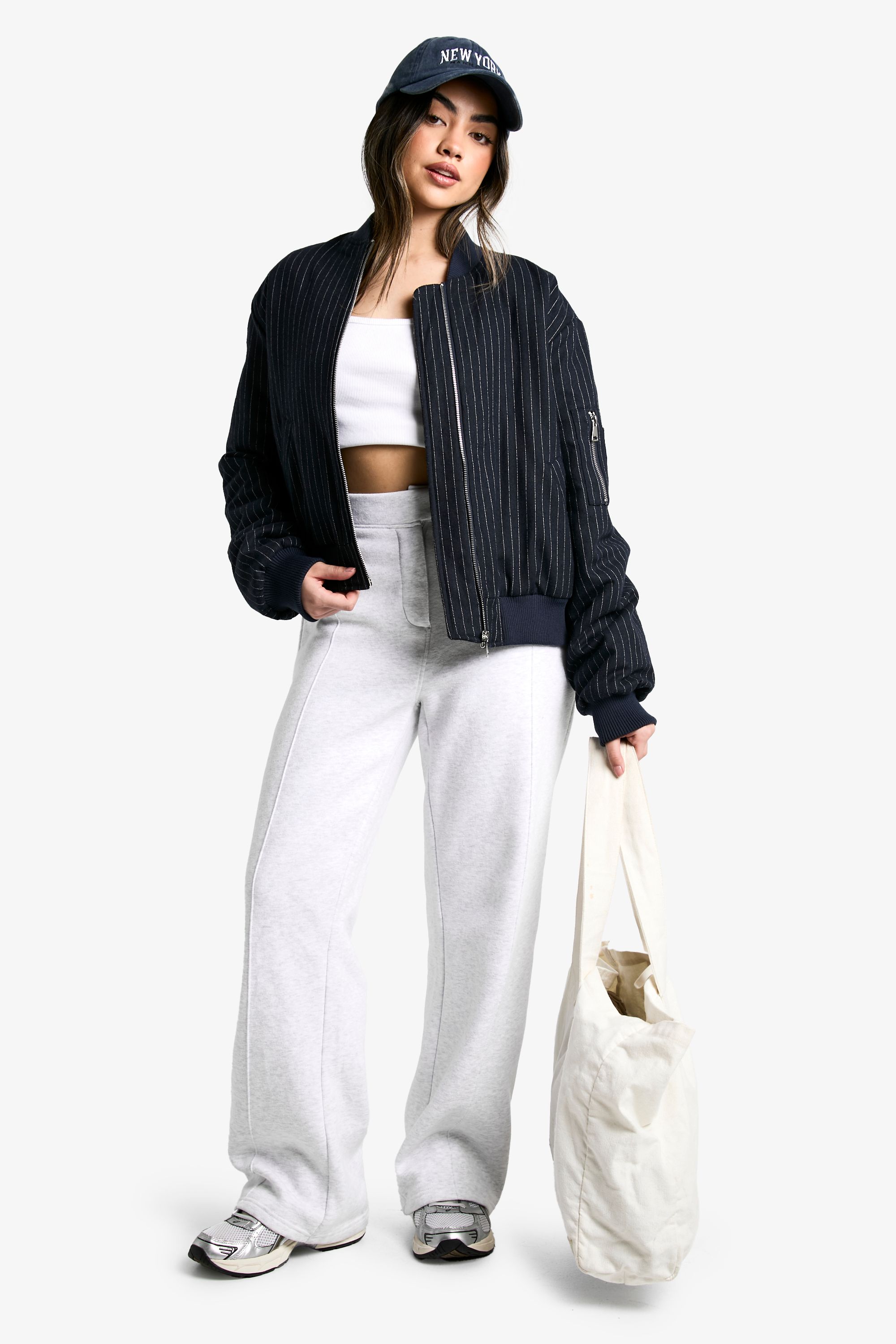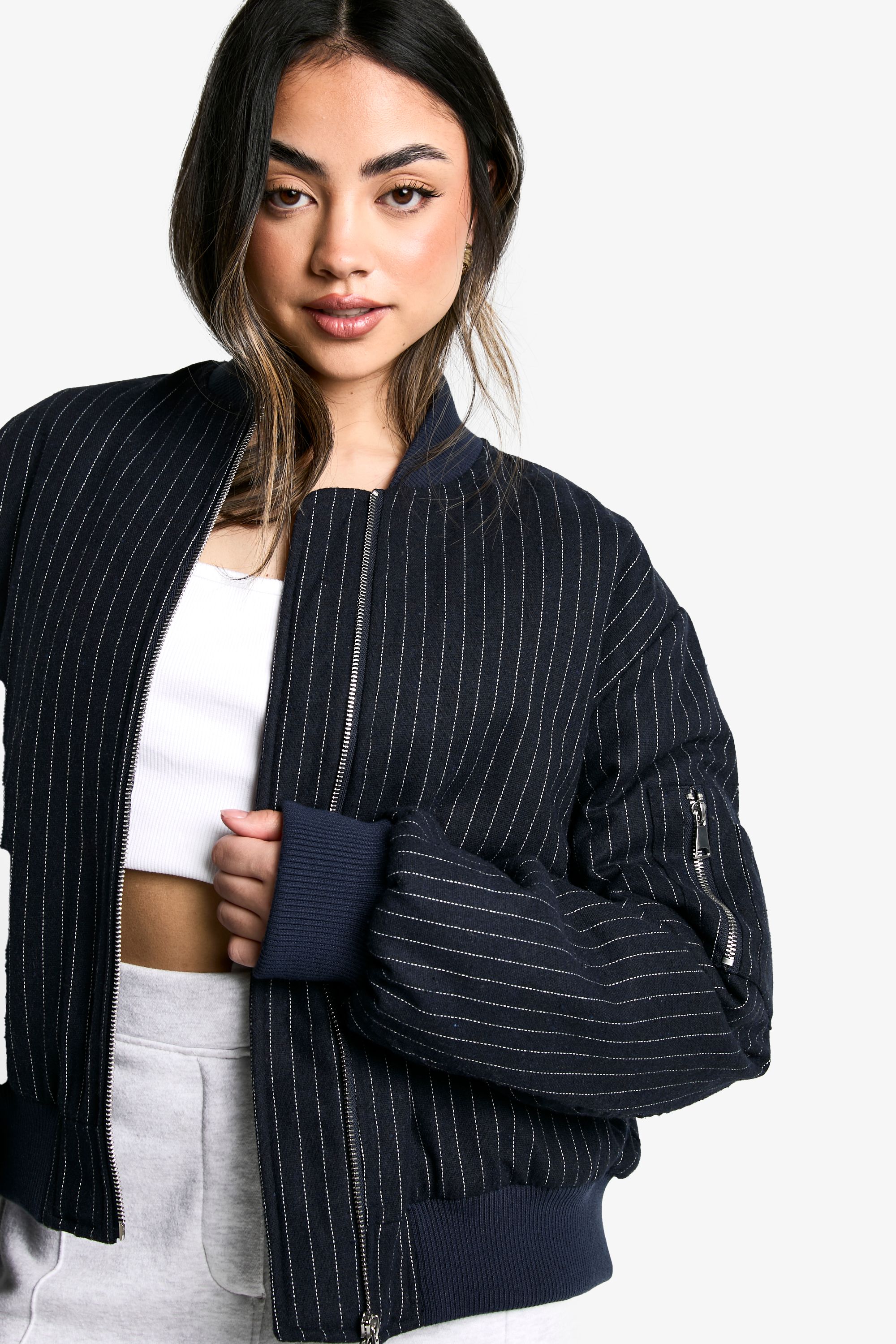 • Versatile zip-front closure for easy wear Embrace the fusion of smart and casual with this pinstripe bomber jacket in wool-look fabric. Perfect for the fashion-forward woman who loves to mix up her style, this piece offers endless versatility. Pair it with wide-leg trousers and trainers for a laid-back yet put-together look, ideal for weekend brunches or casual Fridays at the office. For a night out with friends, throw it over a crop top and high-waisted jeans, adding some statement earrings for extra flair. The jacket's relaxed fit allows for easy layering over jumpers when the temperature drops, making it a year-round staple. Whether you're running errands or meeting mates for a quick coffee, this bomber will keep you looking effortlessly cool and feeling comfortably chic.