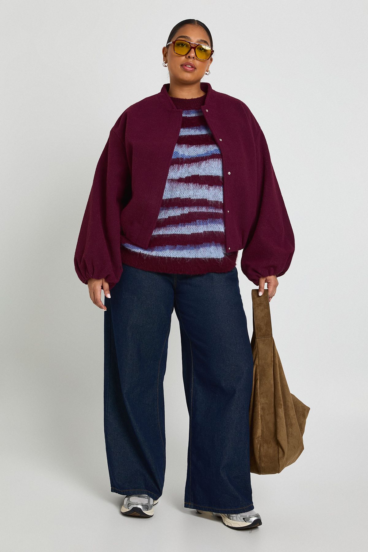 - Relaxed fit design offering comfort without compromising on style This Plus Bomber Jacket combines contemporary volume with classic bomber styling for a piece that makes an impact. The dramatic balloon sleeves create a striking silhouette whilst maintaining the casual essence that makes bomber jackets so wearable. Style as seen with a simple fitted top and pleated mini skirt for a balanced look that plays with proportions beautifully. For cooler days, pair with straight-leg jeans and chunky boots for an effortlessly cool weekend ensemble. The versatile design transitions seamlessly from daytime casual to evening drinks - simply swap your trainers for heeled boots and add statement jewellery. Perfect for family gatherings or casual meet-ups with friends, this jacket offers that coveted combination of comfort and style that's essential for your autumn-winter wardrobe.
