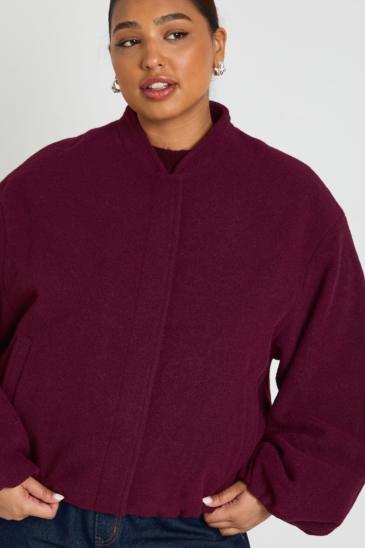 - Wool-look bomber jacket with statement balloon sleeves for a fashion-forward silhouette