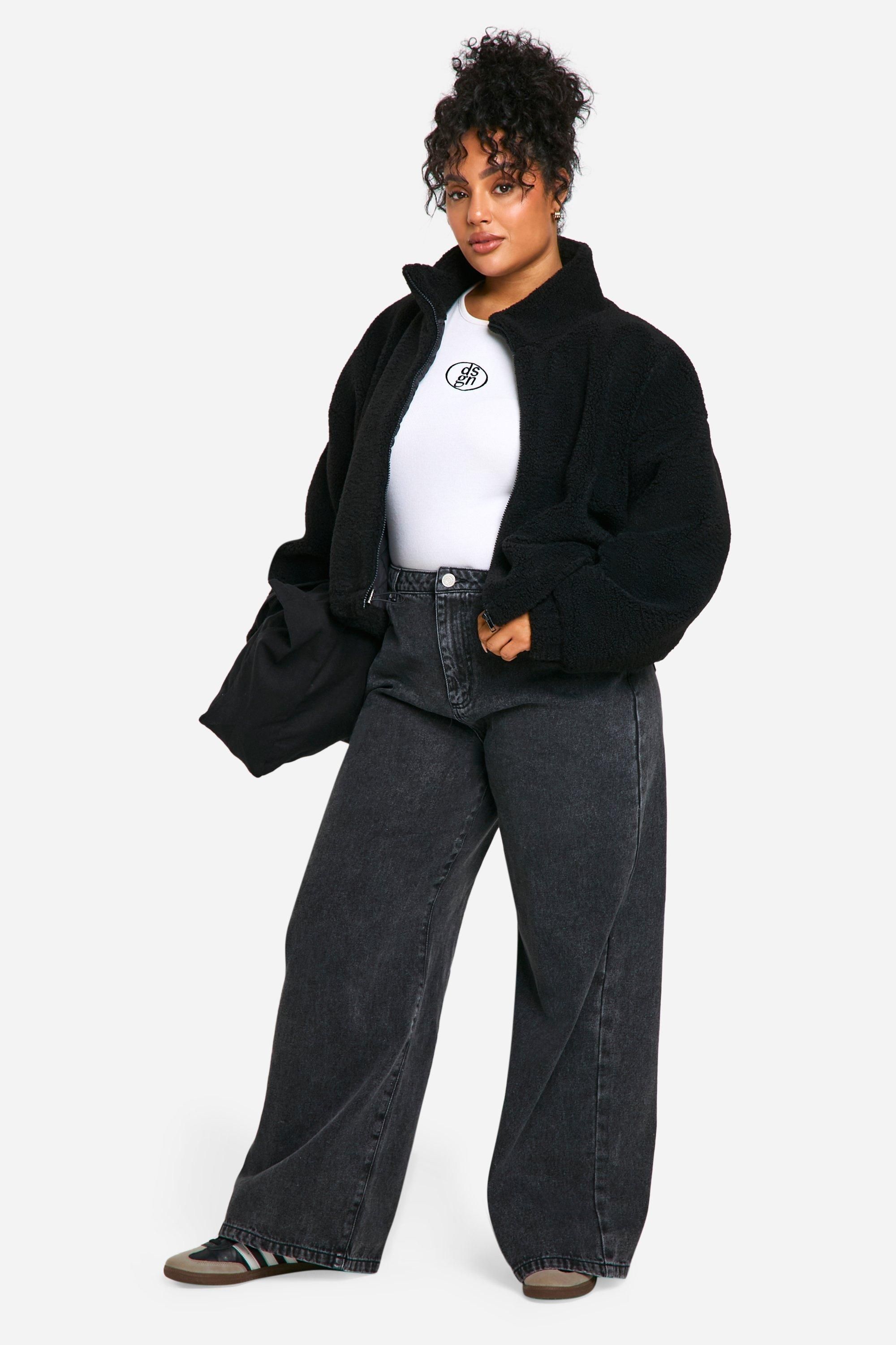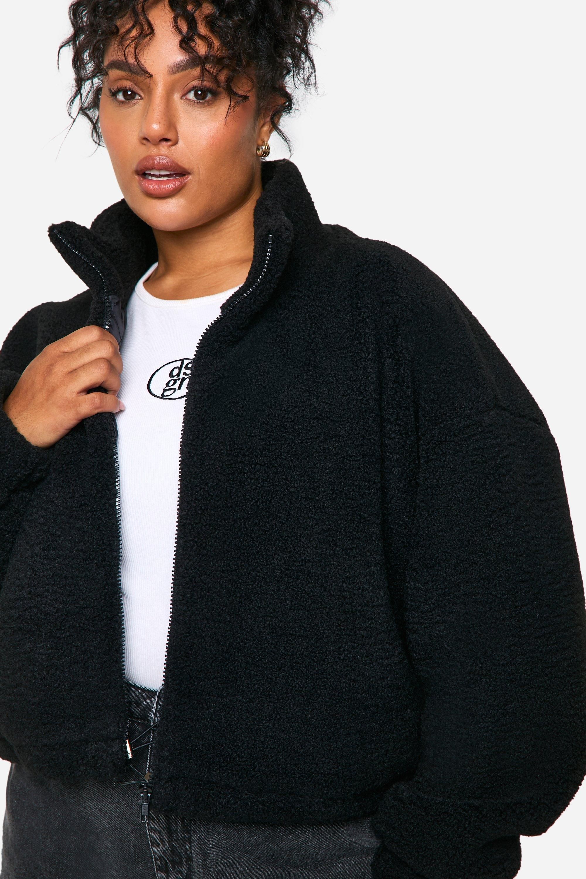 - Embrace the latest trend with this plus-size boxy bomber jacket, crafted from soft teddy fabric that promises both style and comfort. The high collar adds a chic touch while providing extra warmth on cooler days. Perfect for casual outings, this jacket can be effortlessly paired with wide-leg trousers and trainers for a relaxed weekend look. Layer it over a simple white tee and your favourite jeans for coffee runs or family gatherings. The ribbed cuffs and hem ensure a snug fit, while the roomy silhouette allows for easy layering over chunky knits when the temperature drops. This bomber jacket is a versatile piece that will quickly become a go-to in your autumn and winter wardrobe, offering both fashion-forward style and practical cosiness for the fashion-conscious woman who values comfort without compromising on trend.