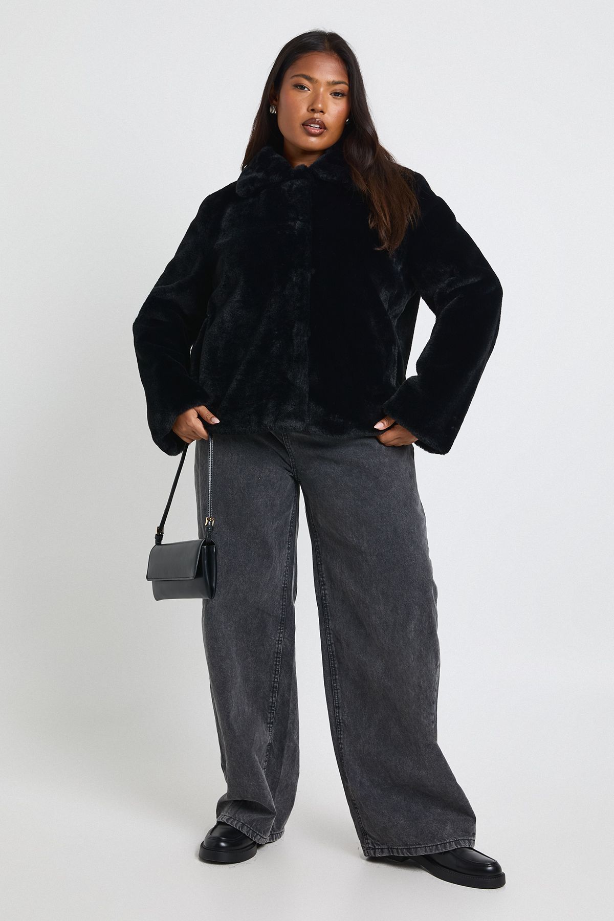 Plus Collared Faux Fur Jacket