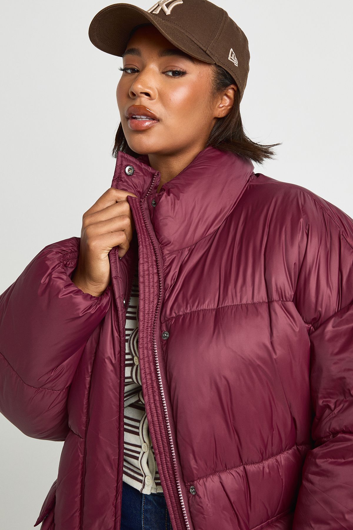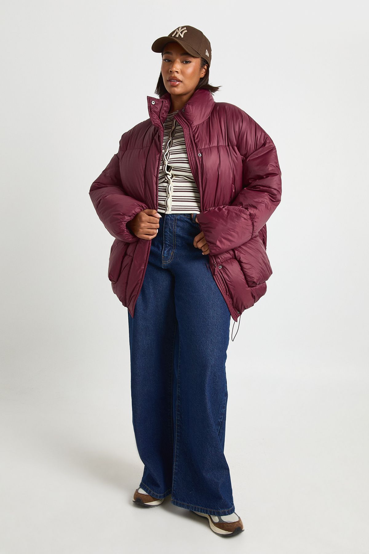 - Practical side pockets perfect for keeping essentials close at hand This statement funnel neck puffer jacket combines practicality with fashion-forward design. The generous proportions create a relaxed, contemporary silhouette that works brilliantly with slim-fitting bottoms for balanced styling. Take inspiration from the images and pair with wide-leg jeans and a striped top for an effortlessly cool weekend look, or add a baseball cap for extra urban edge. Perfect for casual outings, family gatherings or weekend brunches, this jacket provides substantial warmth without compromising on style. The versatile design makes it ideal for layering over jumpers during colder months or wearing with lighter pieces during transitional seasons. A true wardrobe hero that will see you through countless casual occasions with both comfort and flair.