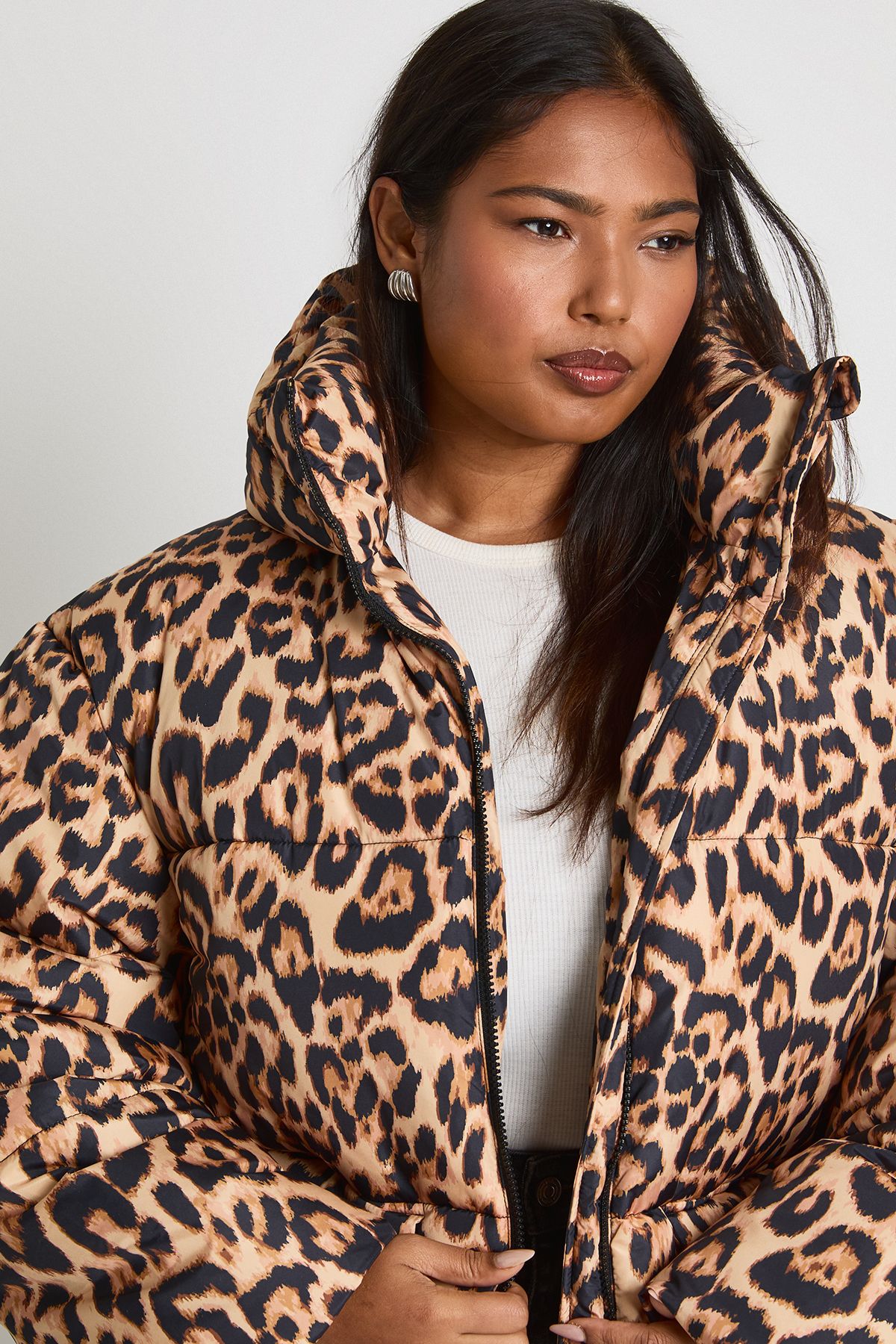 • Make a statement this season with our eye-catching oversized quilted jacket. The bold leopard print adds a touch of wild glamour to any outfit, while the roomy fit ensures comfort and ease of movement. Perfect for those chilly days, this jacket is ideal for layering over your favourite jumpers and tops. Style it with black wide-leg trousers and trainers for a trendy daytime look, or throw it over a little black dress and ankle boots for an edgy evening ensemble. Whether you're heading to a family gathering, meeting friends for coffee, or running errands around town, this versatile piece will keep you warm and stylish. The high collar adds extra protection against the elements, making it a practical choice for unpredictable British weather. Embrace your wild side and stand out from the crowd with this must-have addition to your autumn-winter wardrobe.