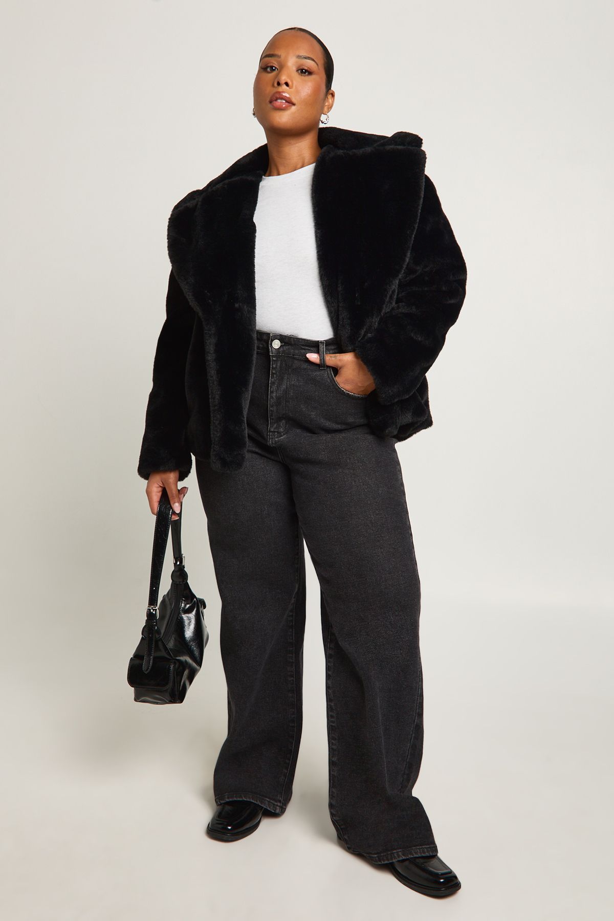 • Embrace the chilly season with this statement-making faux fur jacket. Its mid-length design offers the perfect balance of cosiness and style, making it an ideal choice for various casual occasions. The oversized collar adds a touch of drama, while the relaxed fit ensures comfort for all-day wear. Style this eye-catching piece with sleek faux leather trousers and a simple top for a chic contrast, or pair it with your favourite jeans and trainers for a more laid-back look. Whether you're heading to a family gathering or meeting friends for a casual night out, this jacket will keep you warm and fashionable. Its versatility allows for endless styling options, making it a must-have addition to your autumn and winter wardrobe.