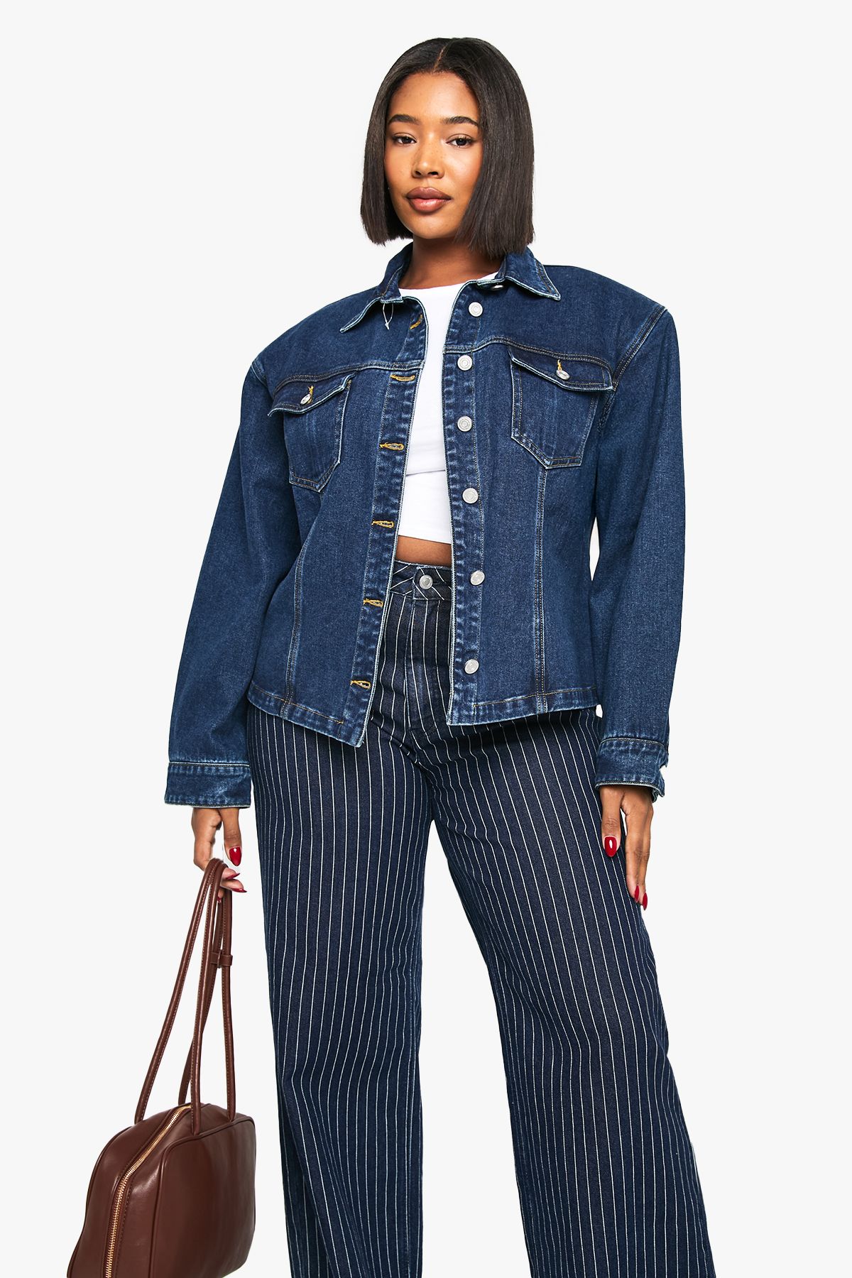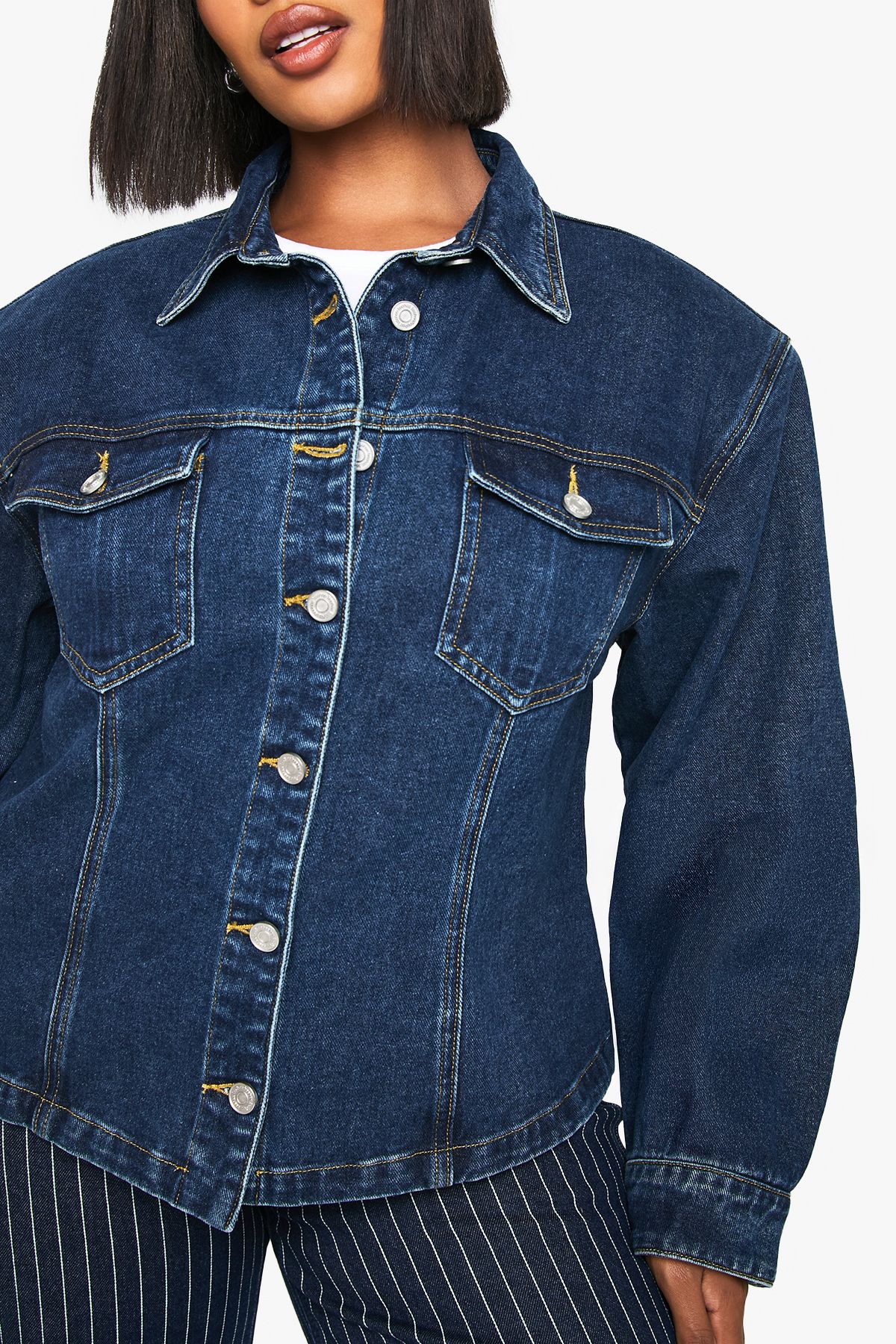 Plus Shoulder Pad Detail Denim Jacket