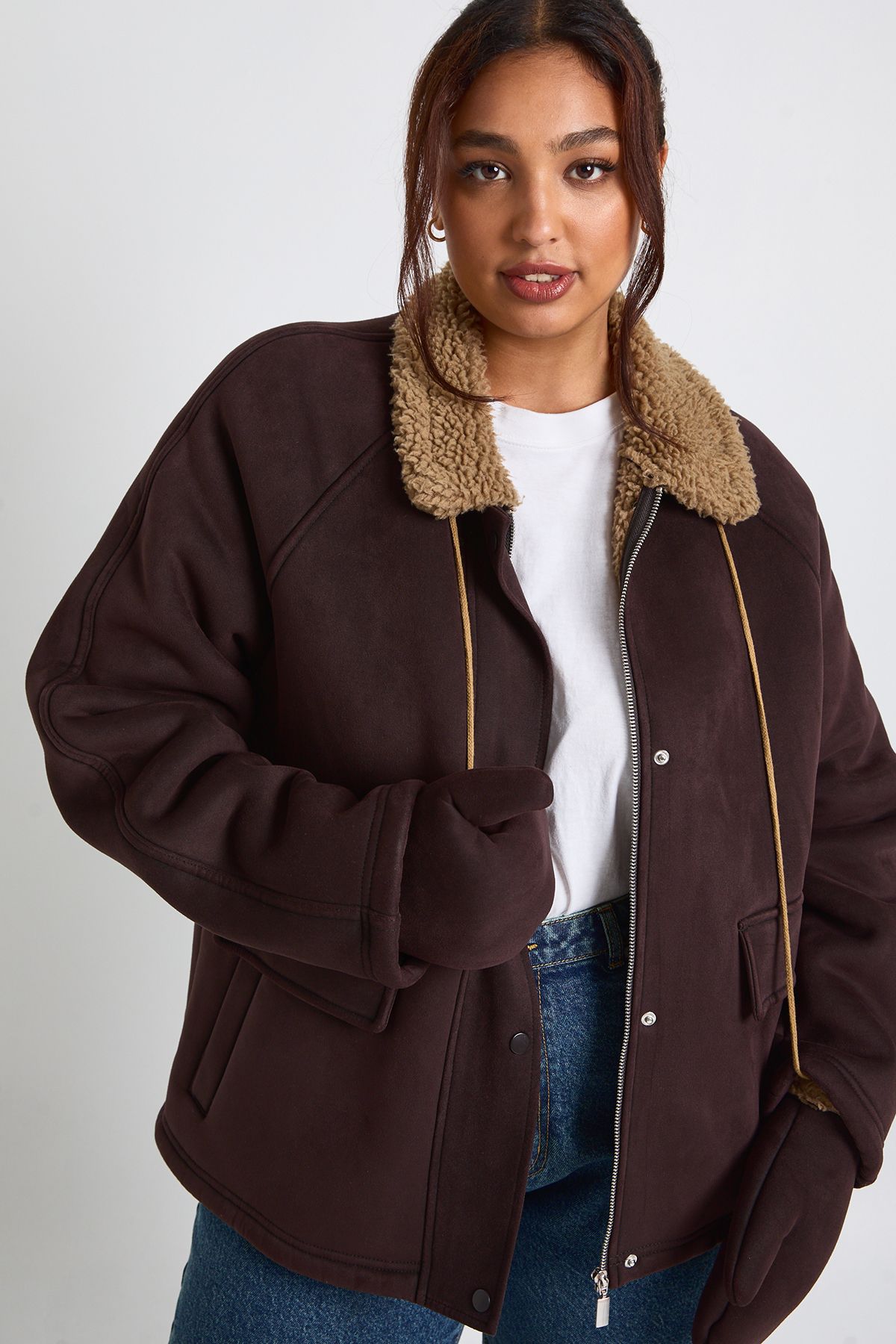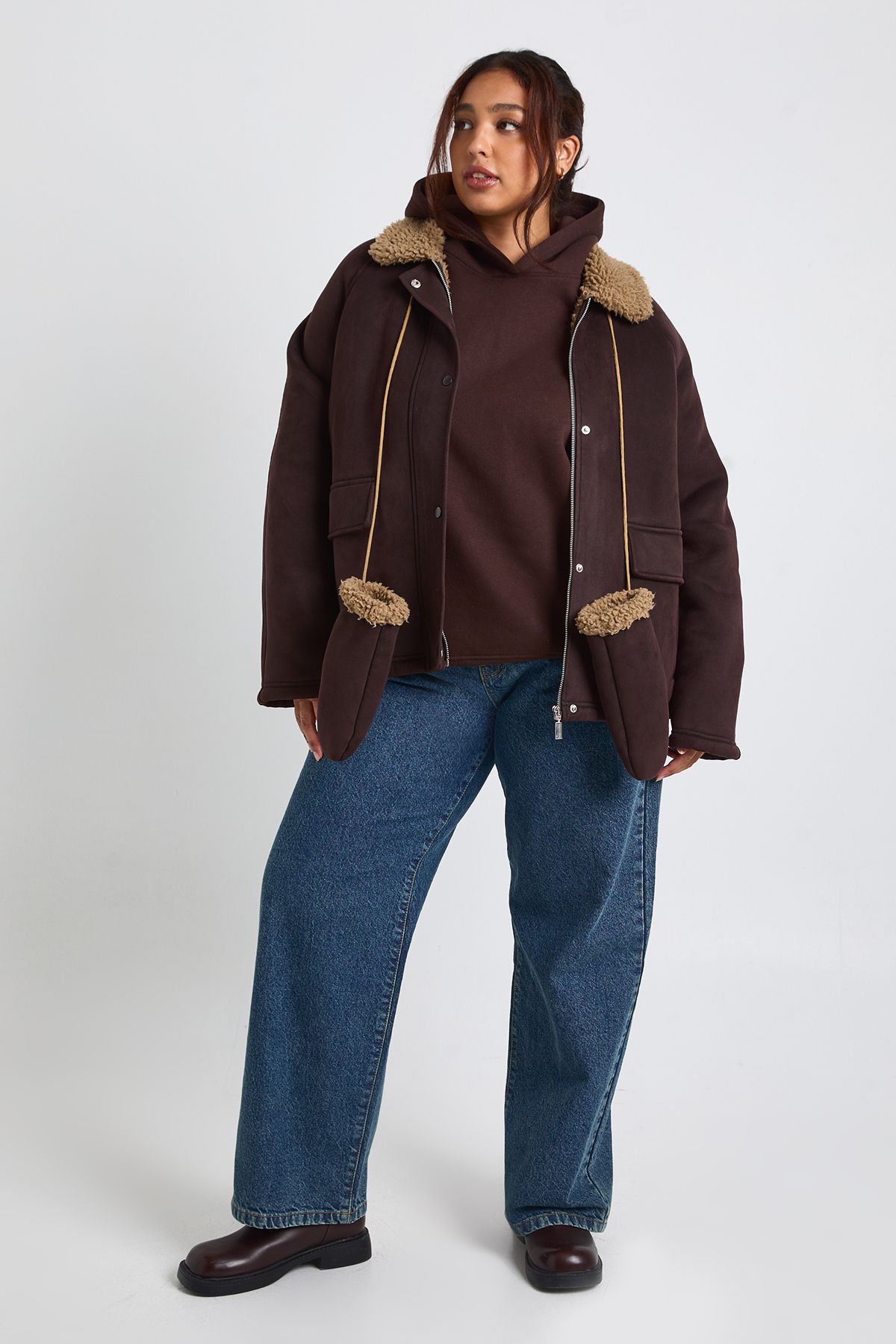 Plus Teddy Trim Detail Oversized Jacket