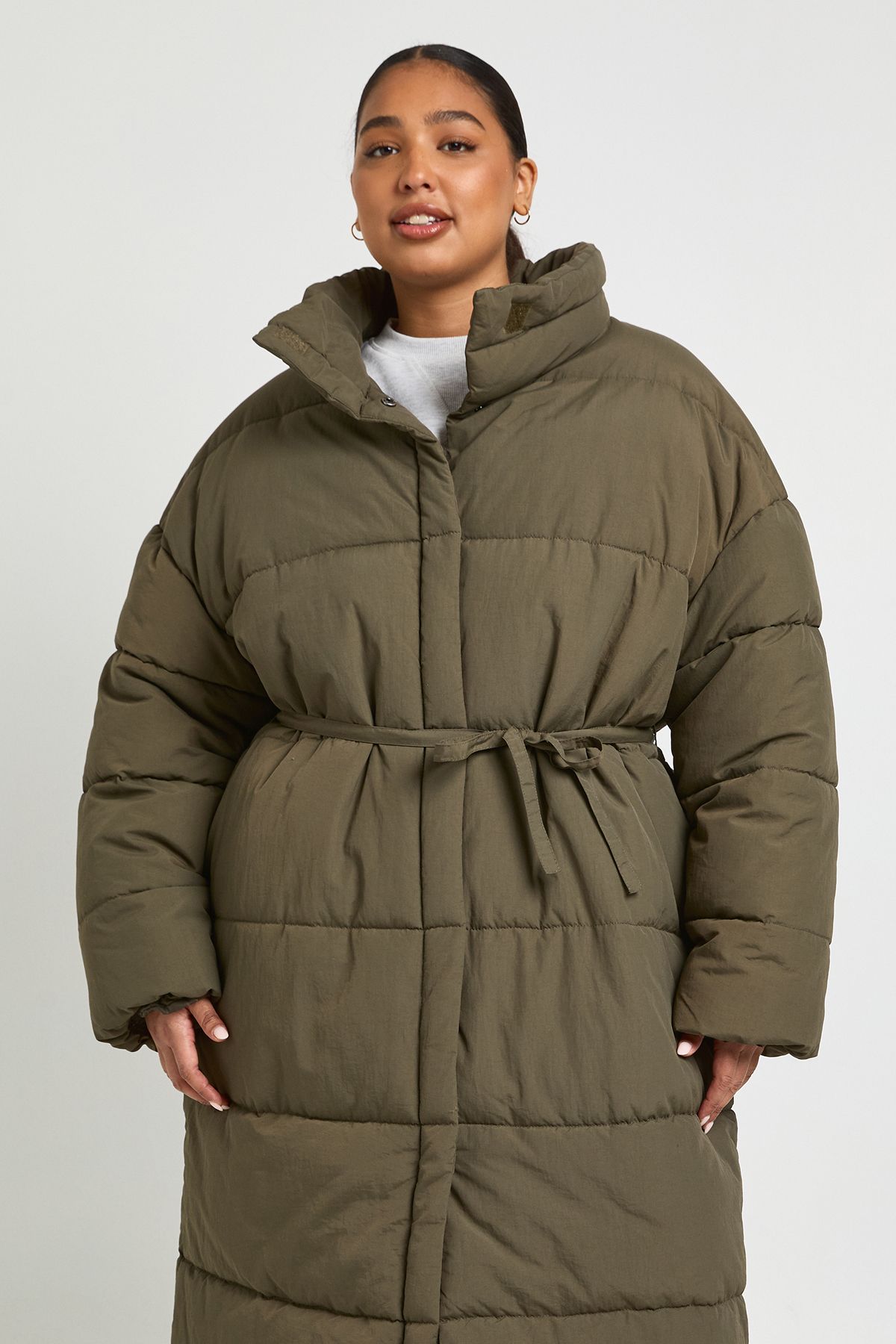 - Make a bold statement this season with our PLUS TIE WAIST PUFFER JACKET. This contemporary longline design combines practicality with on-trend styling, featuring a cinchable waist that allows you to customise your silhouette. Style with wide-leg trousers and trainers for an effortlessly cool weekend look, or layer over a casual dress with chunky boots for a fashion-forward approach to cold-weather dressing. Perfect for family gatherings, casual outings or simply running errands in style, this versatile jacket works brilliantly with both relaxed and smart-casual ensembles. The generous proportions and cosy high neck make it an ideal choice for those chilly British days when comfort cannot be compromised.