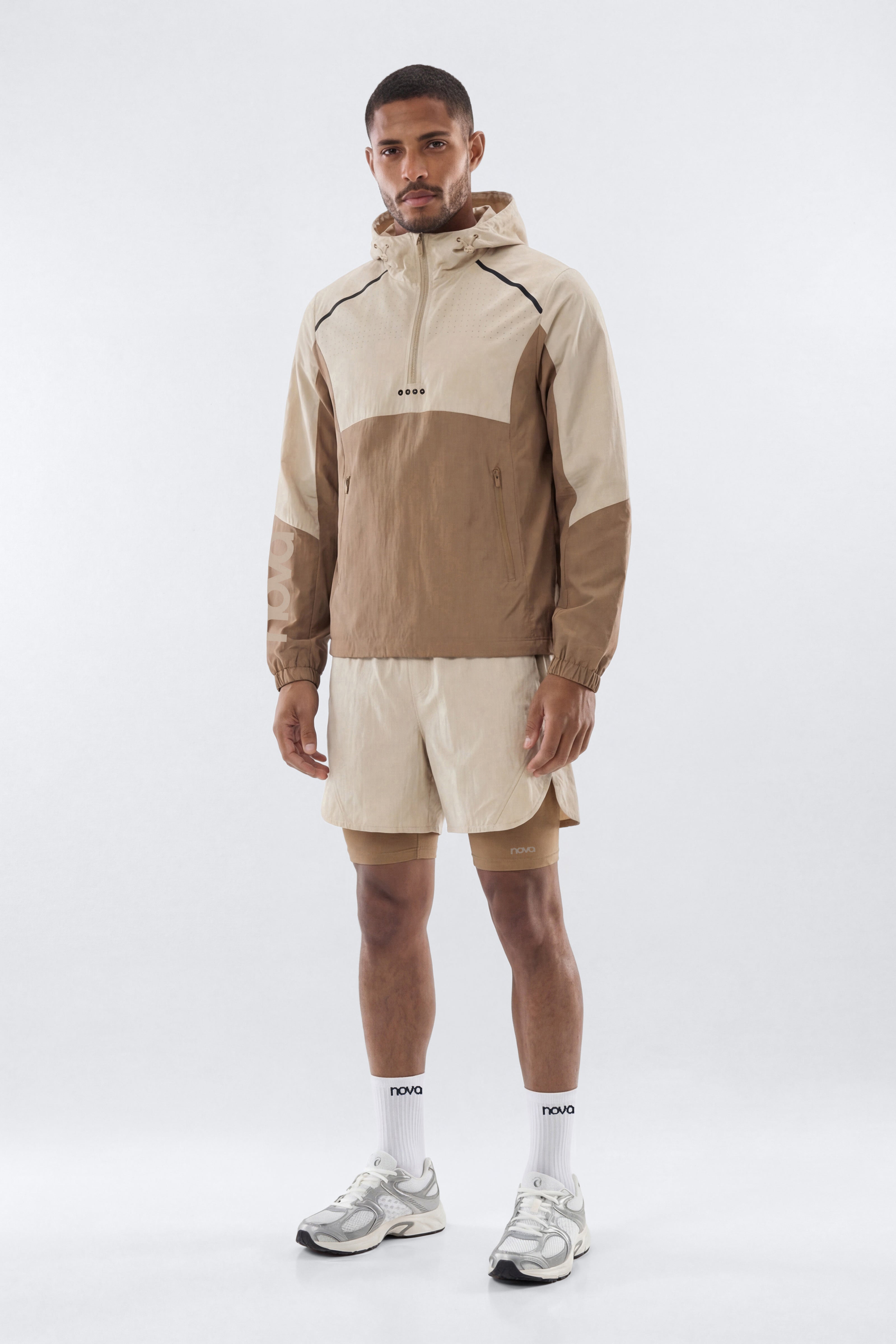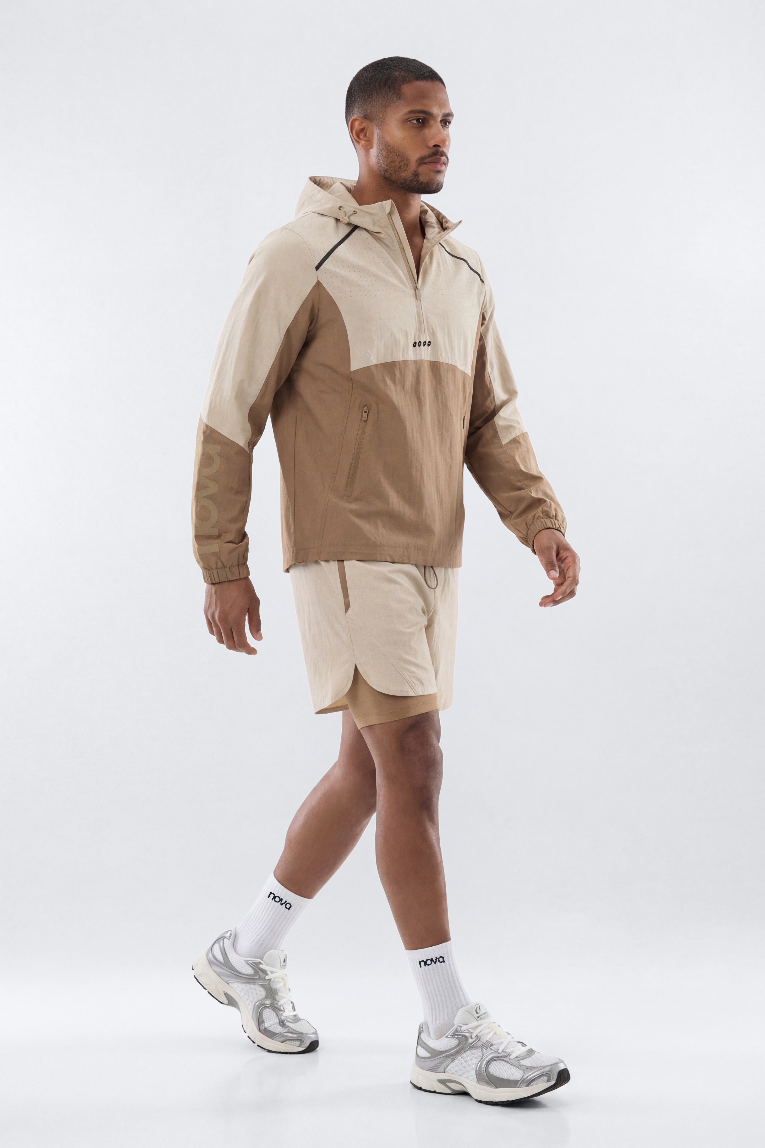 Available In Neon Yellow And Taupe/combo.RipstopHoodedAdjustable Elastic ToggleHalf ZipContrastMesh DetailPair With "Ripstop 7" Built In Compression Shorts"Water RepellentSelf: 77% Cotton 23% NylonLining: 100% PolyesterImportedAvailable In Plus Sizes