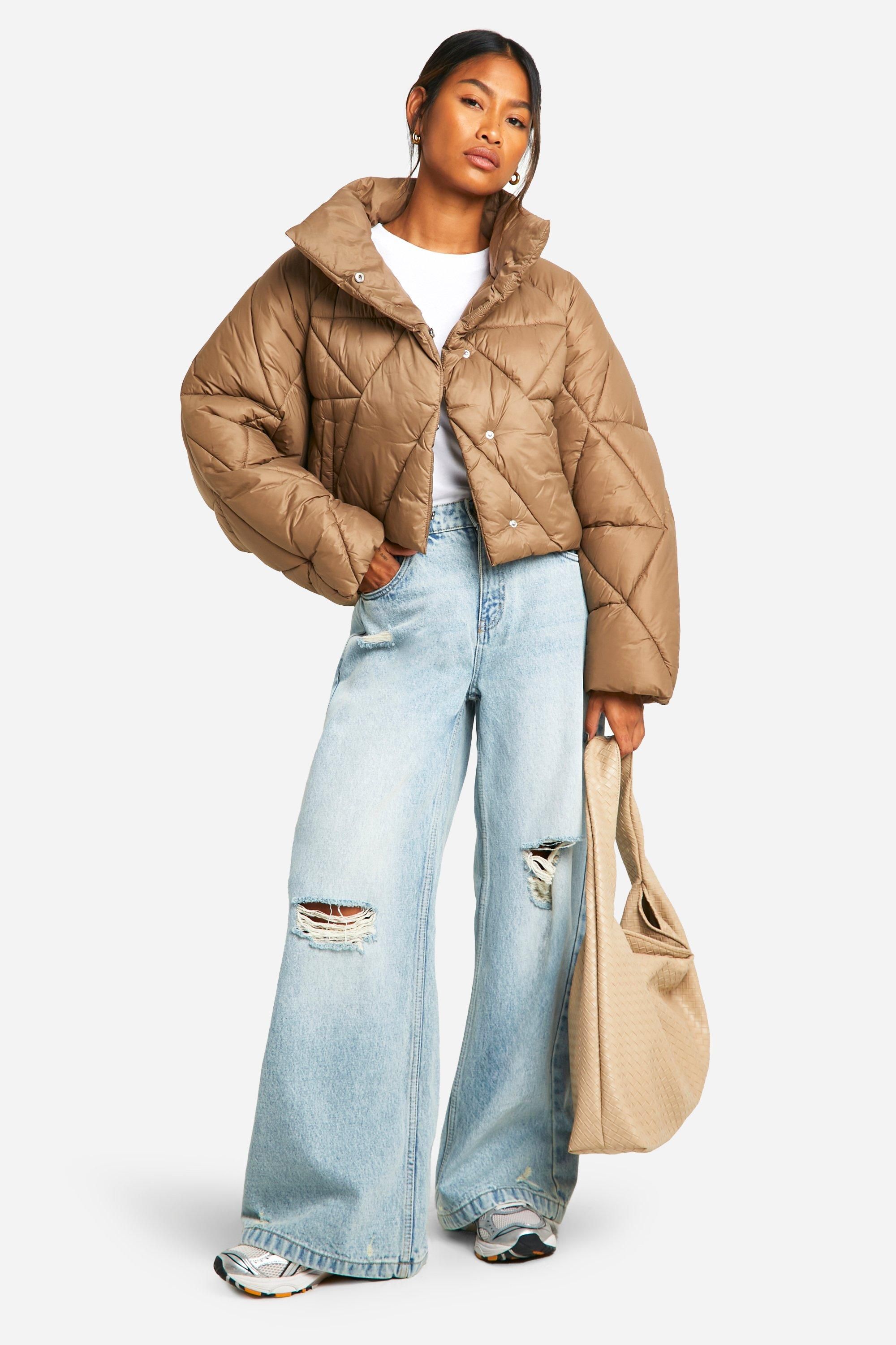 - The Kastige Steppjacke from Boohoo is the ultimate cool-weather companion for the fashion-forward woman. This quilted jacket boasts a chic oversized fit that's perfect for layering over your favourite autumn ensembles. The cropped length adds a modern twist to the classic puffer style, making it ideal for pairing with high-waisted jeans or trousers. Style it with wide-leg denim and trainers for a casual day out, or throw it over a midi dress and boots for a trendy contrast. The high collar not only keeps you cosy but also adds a touch of sophistication to your look. Whether you're heading to a casual gathering with friends or running errands in the city, this versatile jacket is sure to become your go-to outerwear piece for those chilly days.