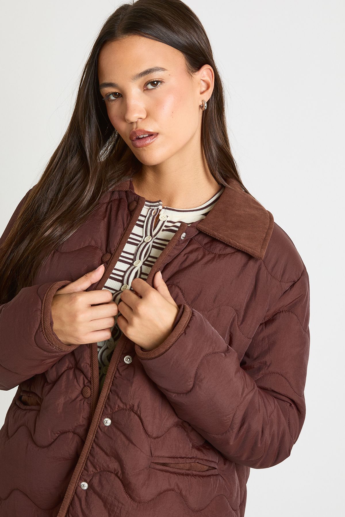 - This quilted collared jacket is the ultimate transitional piece for your casual wardrobe. The distinctive wave-like quilting adds dimension whilst providing warmth without bulk, making it ideal for unpredictable British weather. Style as seen with wide-leg trousers and a patterned top for an effortlessly cool weekend look, or throw over a simple tee and your favourite jeans for coffee runs and casual meet-ups. The relaxed fit ensures comfort for day-long wear, whether you're browsing local markets or meeting friends for a pub lunch. For family gatherings, pair with a midi skirt and trainers for a contemporary twist on casual dressing. This versatile jacket works brilliantly with both neutral basics and bold prints, making it a true wardrobe hero that will serve you season after season.