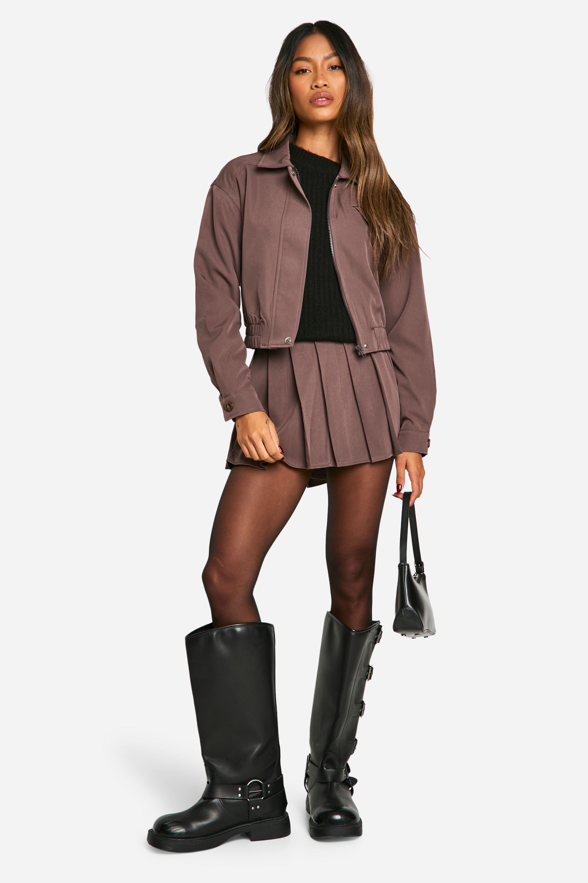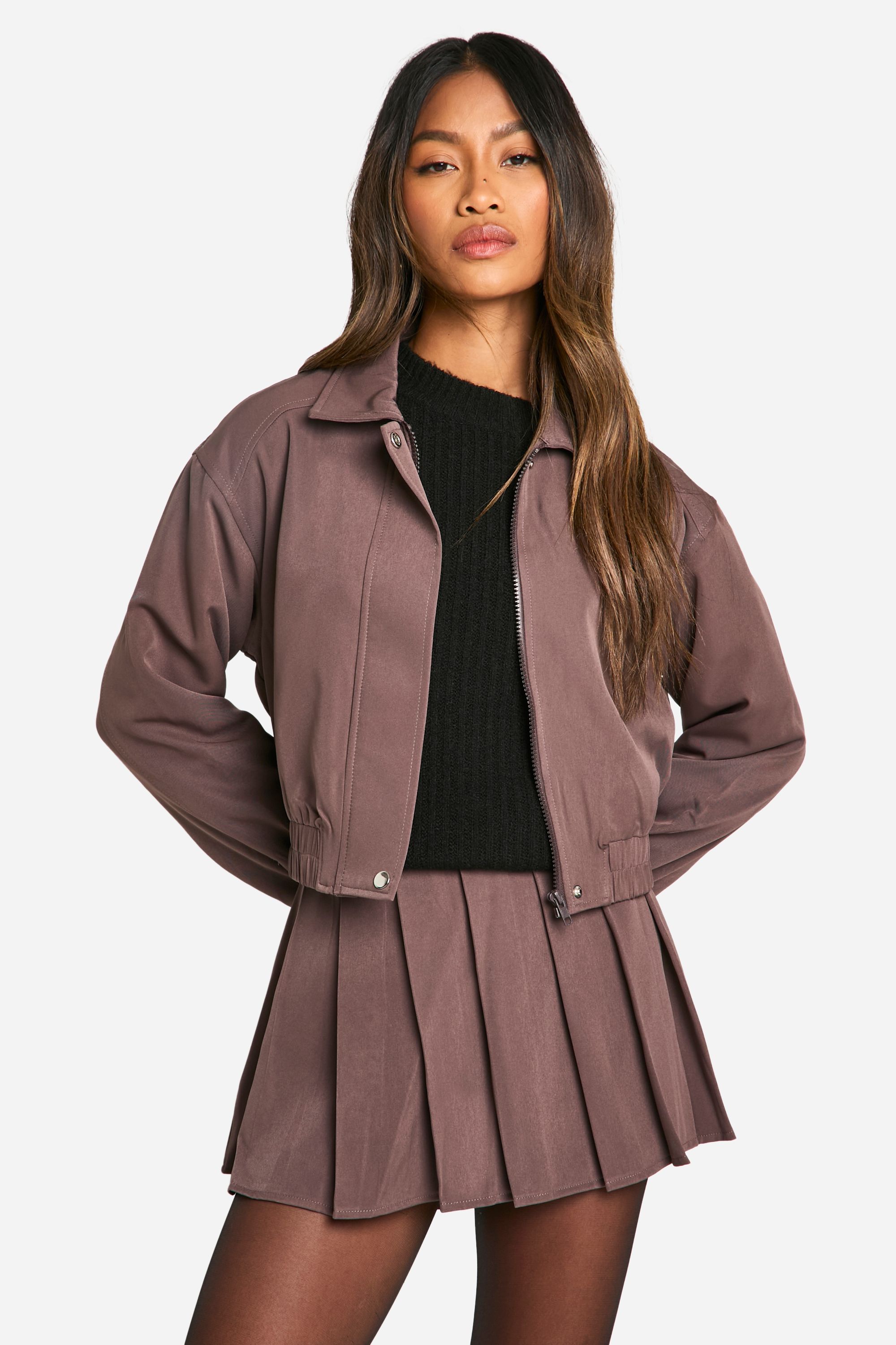 - Embrace effortless style with this loose-fitting bomber jacket from Boohoo. Perfect for the fashion-forward woman who values both comfort and trend-setting looks, this jacket is a must-have for your casual wardrobe. The oversized fit allows for easy layering, making it ideal for unpredictable British weather. Style it with a pleated mini skirt and a black jumper for a chic daytime ensemble. For a more edgy look, pair it with skinny jeans and chunky boots. This bomber jacket is versatile enough to take you from casual coffee dates to laid-back evening gatherings with friends. The woven crepe fabric ensures a lightweight feel, making it suitable for various seasons. Whether you're heading to a family barbecue or a casual night out, this jacket will keep you looking stylish and feeling confident.