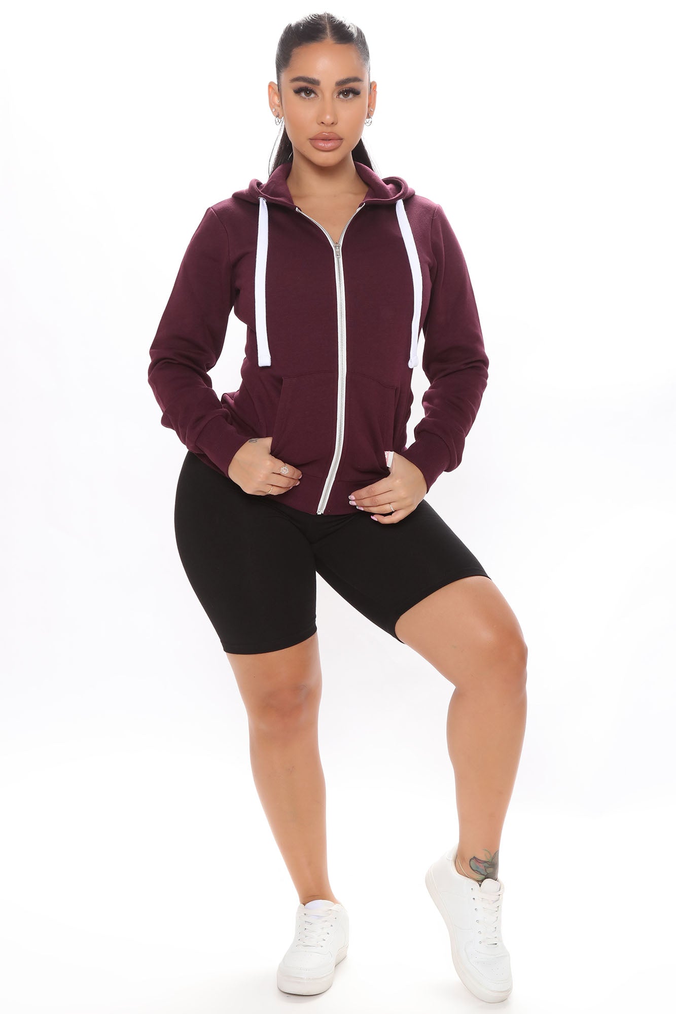 Available In Black, Chocolate, Heather Grey, Marled Black, Navy, Olive, Orange, Pink, Plum And Red.FleeceSolidFull Zip JacketHoodiePocketsContrast White DrawstringPair With "Relaxed Vibe Jogger"Self: 60% Cotton 40% PolyesterLining: 60% Cotton 40% PolyesterImported