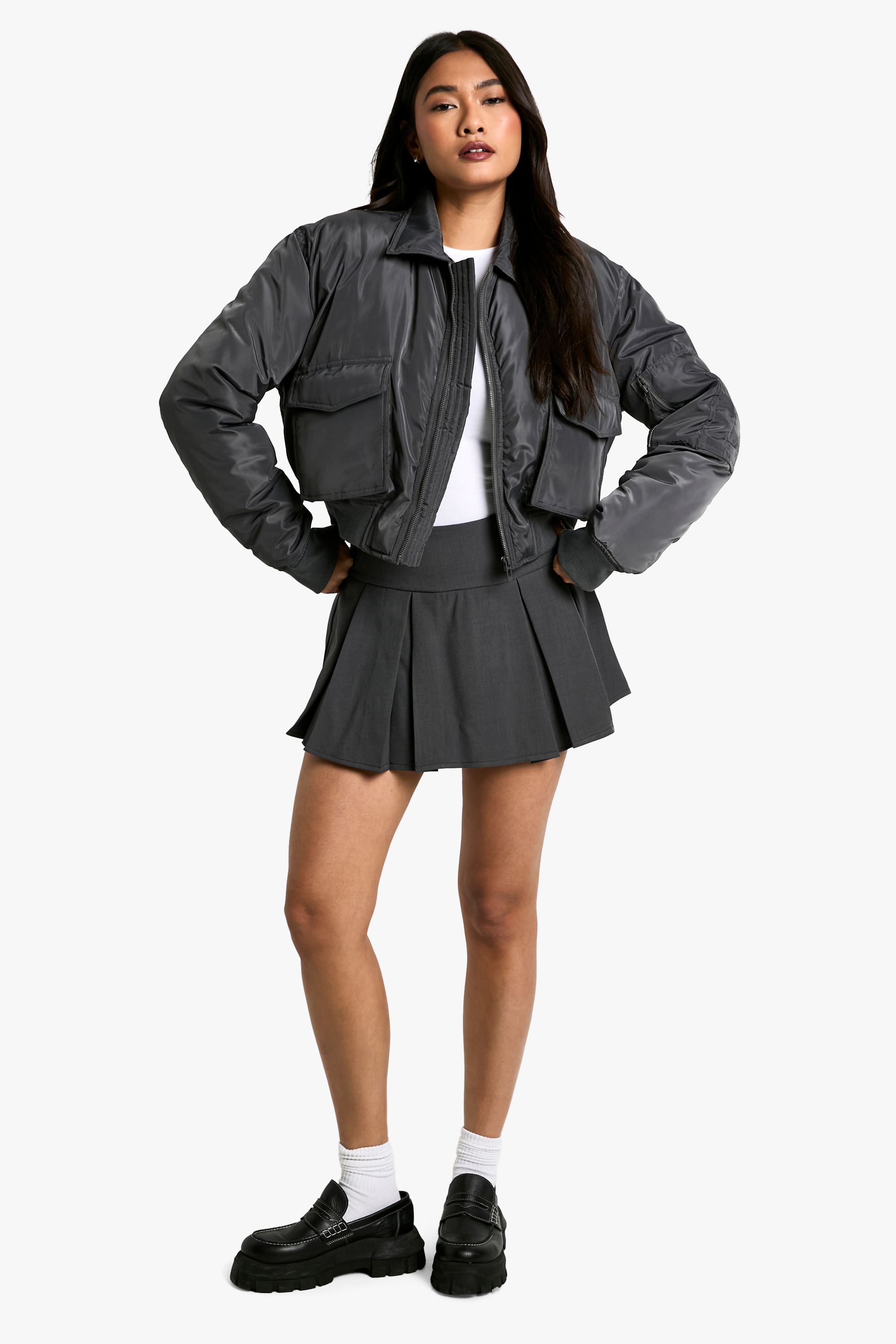 - Make a statement with this chic cropped bomber jacket, perfect for the fashion-forward trendsetter. The ribbed detailing adds a touch of texture, while the classic silhouette ensures versatility for various occasions. Style it with a pleated mini skirt and chunky trainers for a casual day out, or pair it with high-waisted trousers and heeled boots for an evening look. The jacket's compact design makes it ideal for layering over a fitted top or dress, allowing you to transition effortlessly from day to night. Whether you're heading to a casual lunch with friends or a laid-back family gathering, this bomber jacket will keep you looking stylish and feeling comfortable. Its adaptable nature means you can easily customise your look to suit your mood and the event, making it a must-have addition to your wardrobe.
