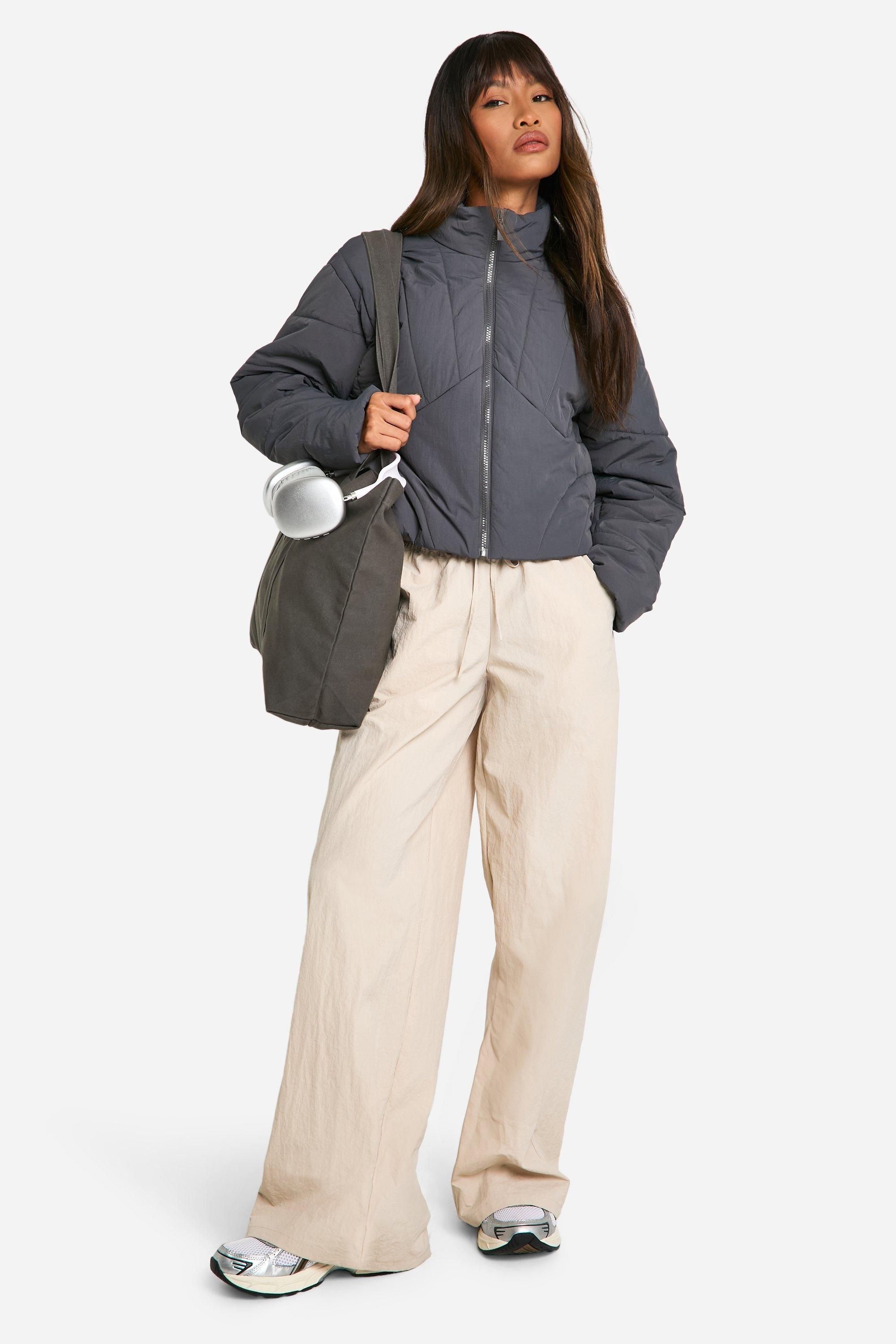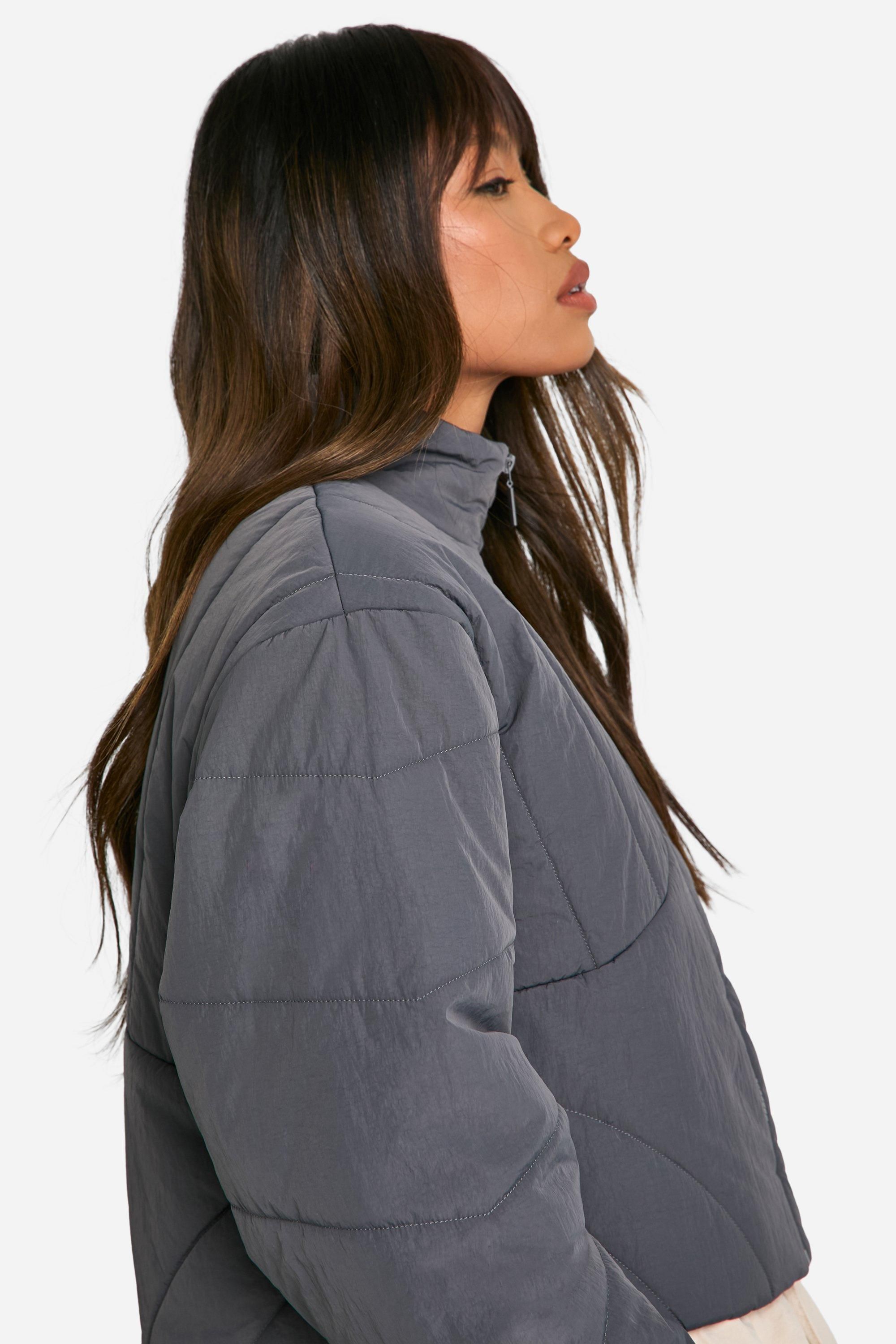 - This Boohoo steppjacke is the epitome of casual chic, perfect for the fashion-forward woman who values both style and comfort. The cropped length and oversized fit create a bold, contemporary silhouette that's ideal for layering over your favourite outfits. As seen on the model, pair it with wide-leg trousers and trainers for an effortlessly cool look that's perfect for weekend brunches or casual outings with friends. The high neck and quilted design offer practicality for cooler days, while the sleek zip closure allows for easy styling. Whether you're running errands or meeting mates for coffee, this jacket adds an element of urban sophistication to any casual ensemble. Its versatility makes it a wardrobe staple that can transition seamlessly from day to night, ensuring you're always ready for whatever your social calendar throws your way.