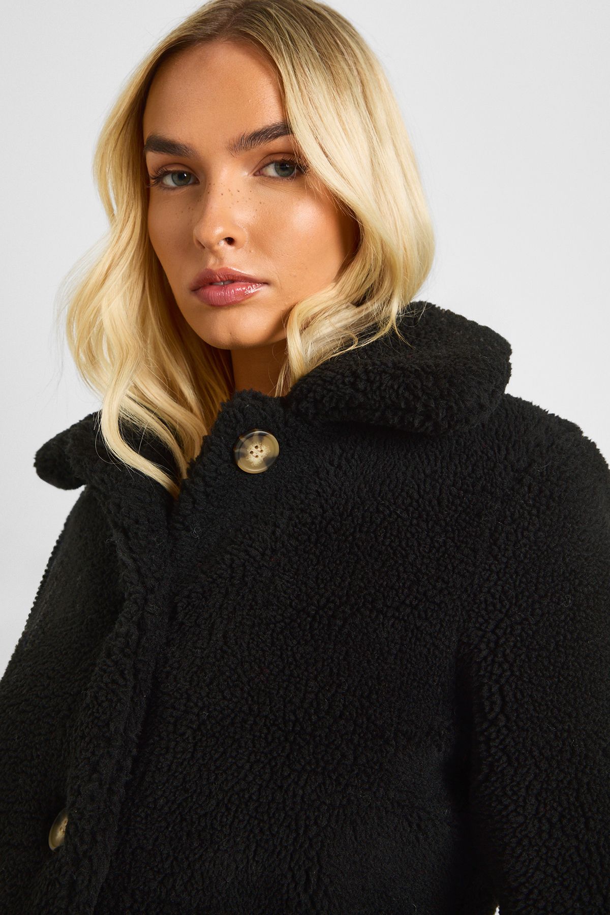 - Plush fur collar adds a luxurious touch to this cosy cropped jacket