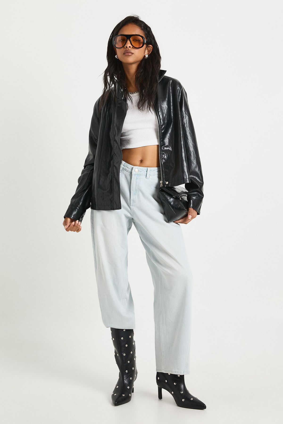 - Sleek faux leather finish that adds edge to your everyday look This iconic bomber jacket is the ultimate cool-girl staple for your wardrobe. The relaxed, oversized silhouette offers both comfort and style, making it perfect for those casual days when you still want to make a statement. Style it as seen with a simple crop top and wide-leg trousers for an effortlessly chic daytime look, or throw it over a mini dress with chunky boots for evening drinks with friends. The versatile design works brilliantly with both casual and dressed-up pieces, making it ideal for family gatherings or weekend brunches. For a truly British street style moment, pair with your favourite denim, trainers and statement sunglasses. This Boohoo bomber is designed to be the hardworking hero piece that transitions seamlessly from day to night, season after season.
