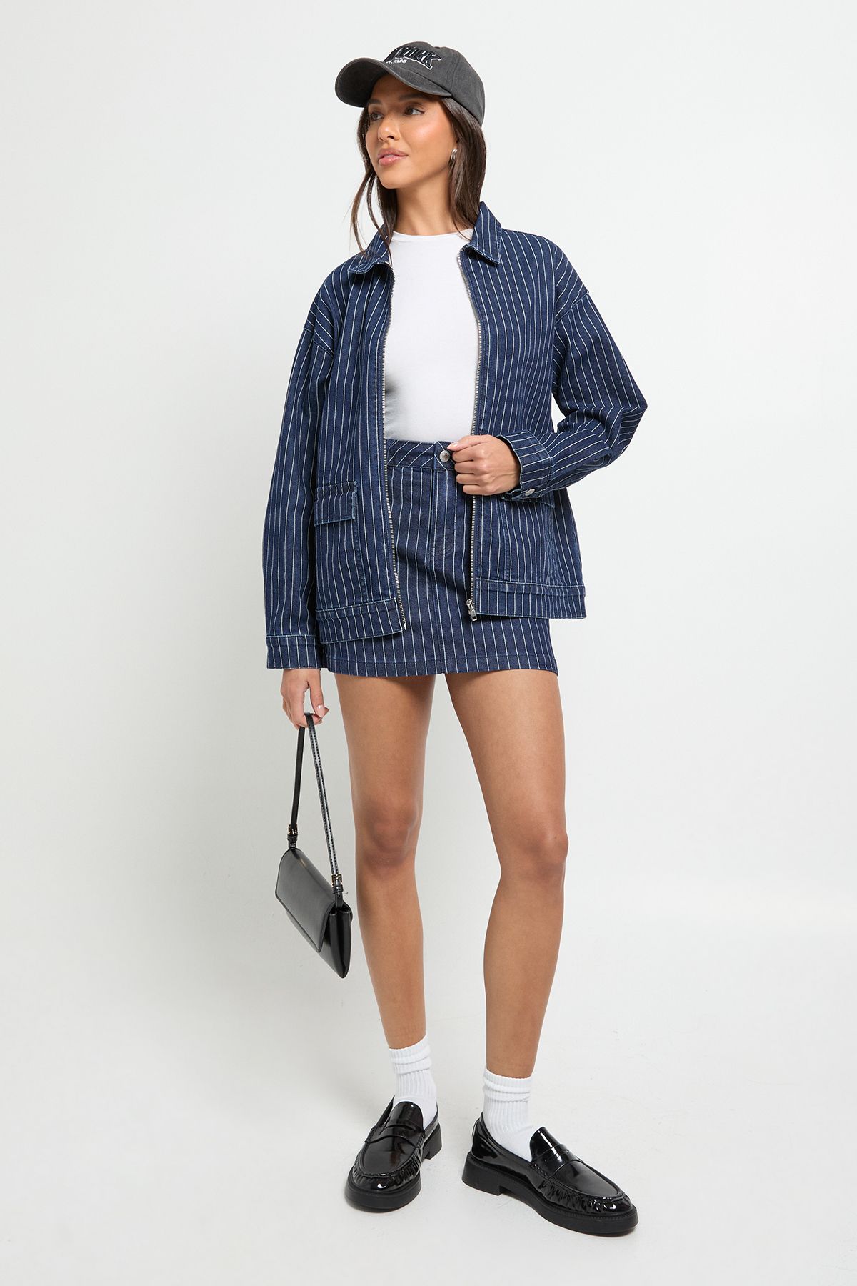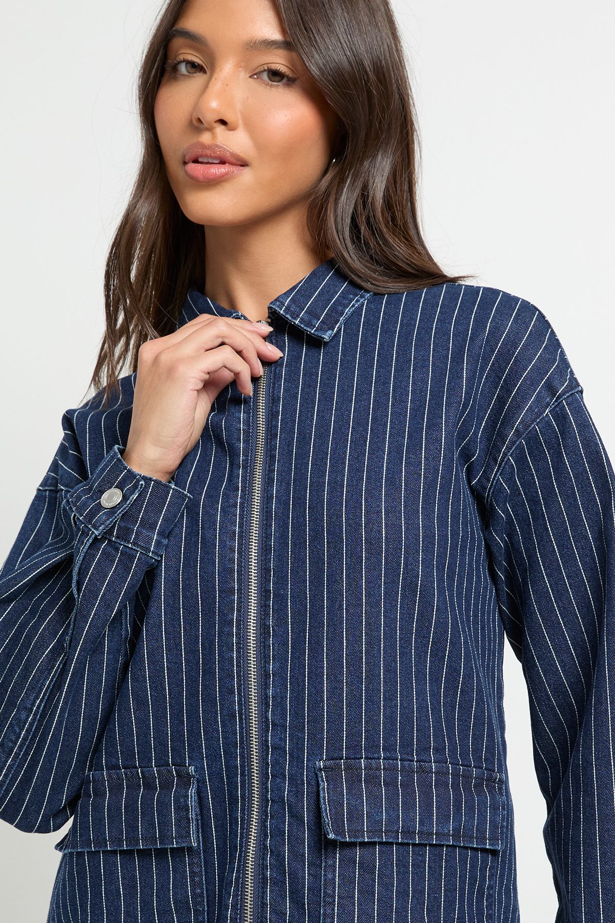 - This stripe denim collared jacket brings a refreshing update to your casual wardrobe essentials. The relaxed fit creates a laid-back silhouette that works brilliantly with everything from mini skirts to your favourite jeans. As seen on our model, pair with a simple white top and pleated mini skirt for a stylish daytime look, or throw over a casual dress for instant cool-girl appeal. The structured collar adds a touch of polish, making this piece suitable for family gatherings or weekend brunches with friends. Perfect for transitional weather, this jacket can be styled with trainers and a crossbody bag for shopping trips, or dressed up with ankle boots for casual evening outings. The cotton-rich fabric offers comfort and durability, ensuring this versatile piece becomes a go-to in your everyday rotation.
