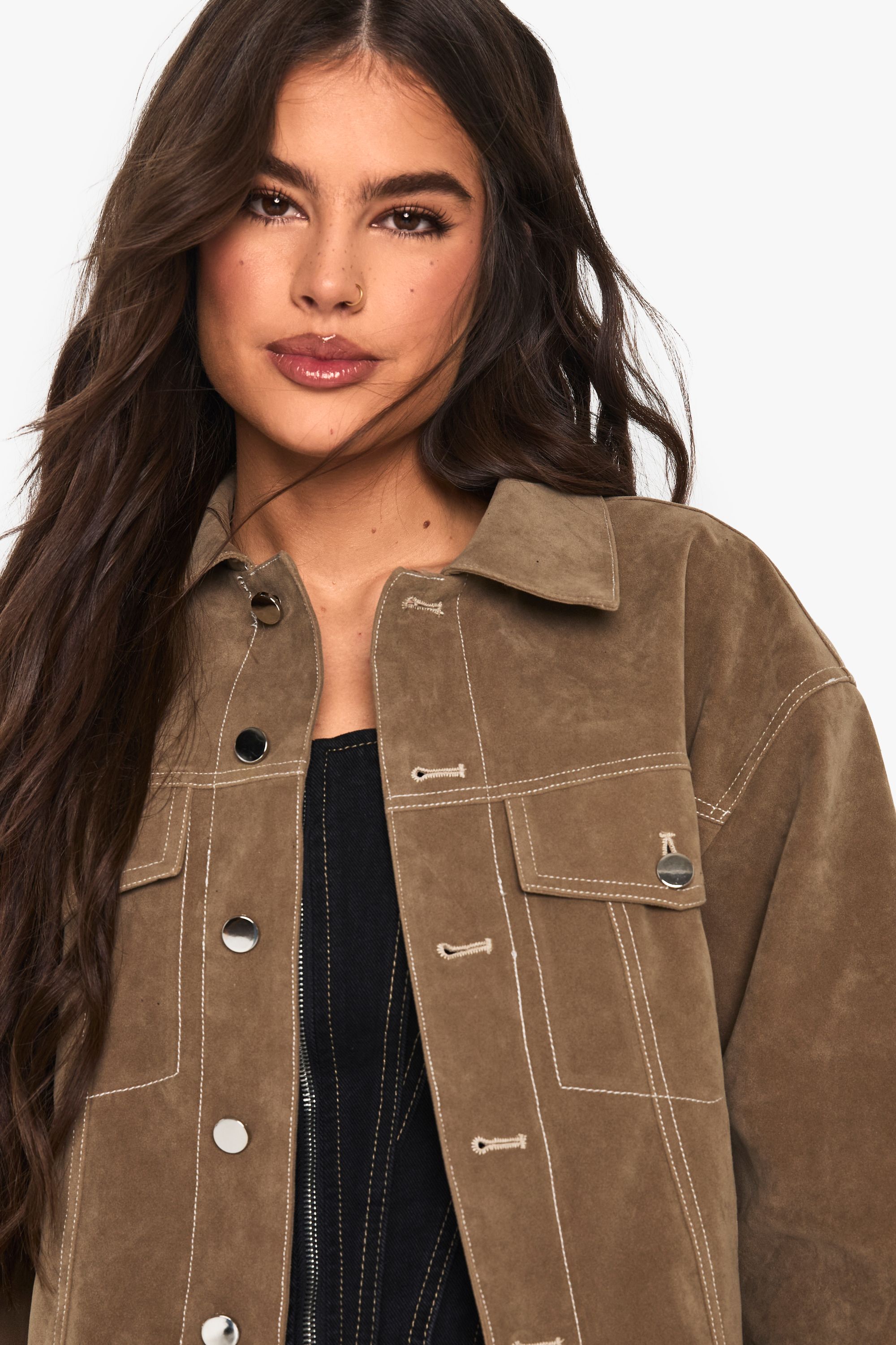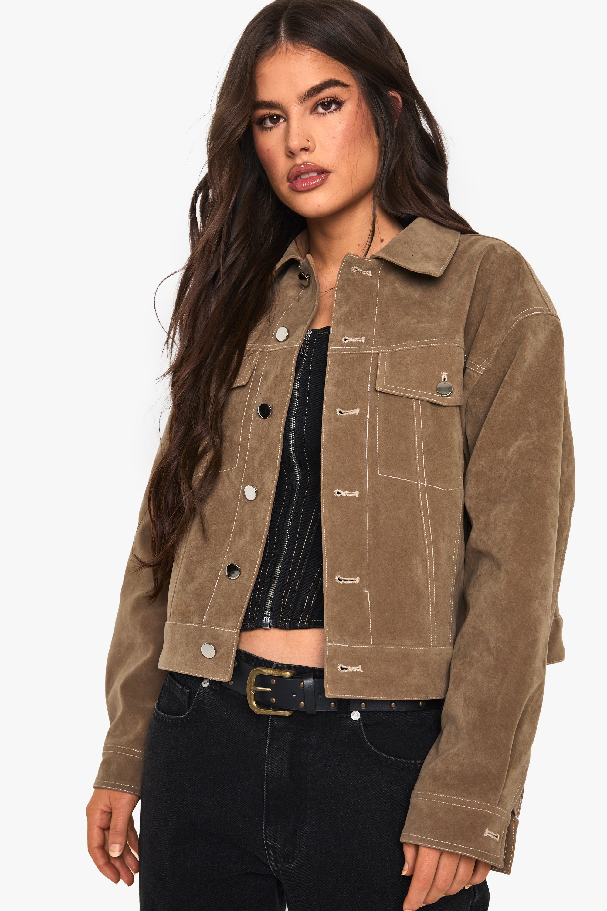 • This faux suede jacket with striking contrast stitching brings a touch of western-inspired flair to your casual wardrobe. The cropped, boxy shape creates a flattering silhouette that works brilliantly with high-waisted jeans or trousers. Style as seen with black denim and a simple top for an effortlessly cool daytime look, or throw over a printed midi dress with ankle boots for weekend brunches. For a festival-ready ensemble, pair with denim shorts and wellies. The versatile nature of this jacket makes it ideal for transitional weather - layer over a lightweight jumper when temperatures drop. Perfect for family gatherings, casual coffee dates or shopping trips with friends, this jacket combines practicality with on-trend styling that embodies the Boohoo spirit of accessible fashion that doesn't compromise on style.