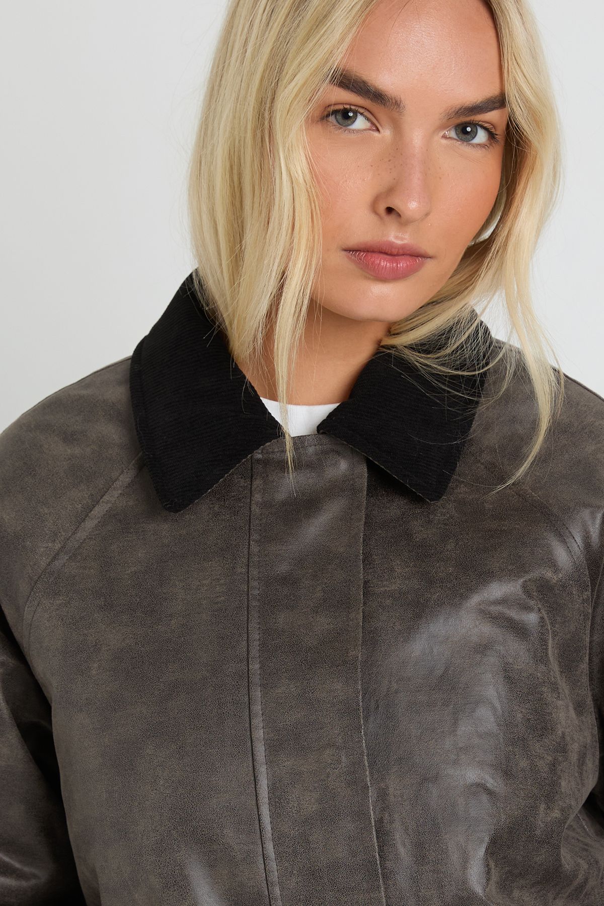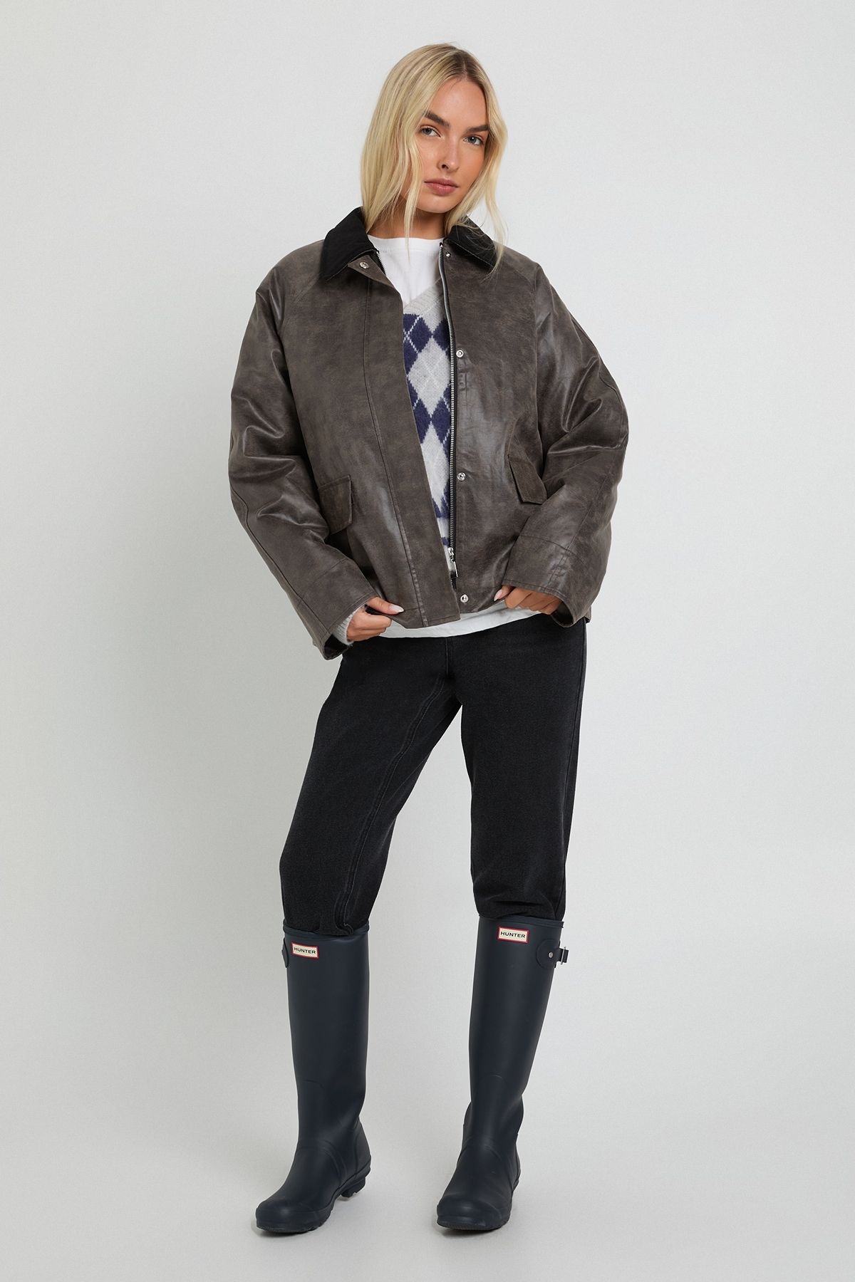 - Contrasting collar adds dimension and visual interest to this versatile outerwear piece This suede-look jacket with distinctive contrast stitching is the perfect addition to your casual wardrobe. The relaxed fit makes it ideal for layering over knitwear, as shown with the argyle jumper styling. The contrasting collar adds a touch of character while maintaining a versatile aesthetic that works brilliantly for family gatherings or weekend outings. Style with straight-leg trousers and a basic tee for an effortlessly cool daytime look, or throw over a printed dress with trainers for a more feminine approach. The jacket's structured silhouette offers a flattering shape without restricting movement, making it practical for everyday wear. Perfect for transitional weather, this Boohoo piece will quickly become your go-to for those moments when you need to look put-together yet comfortable for casual occasions.