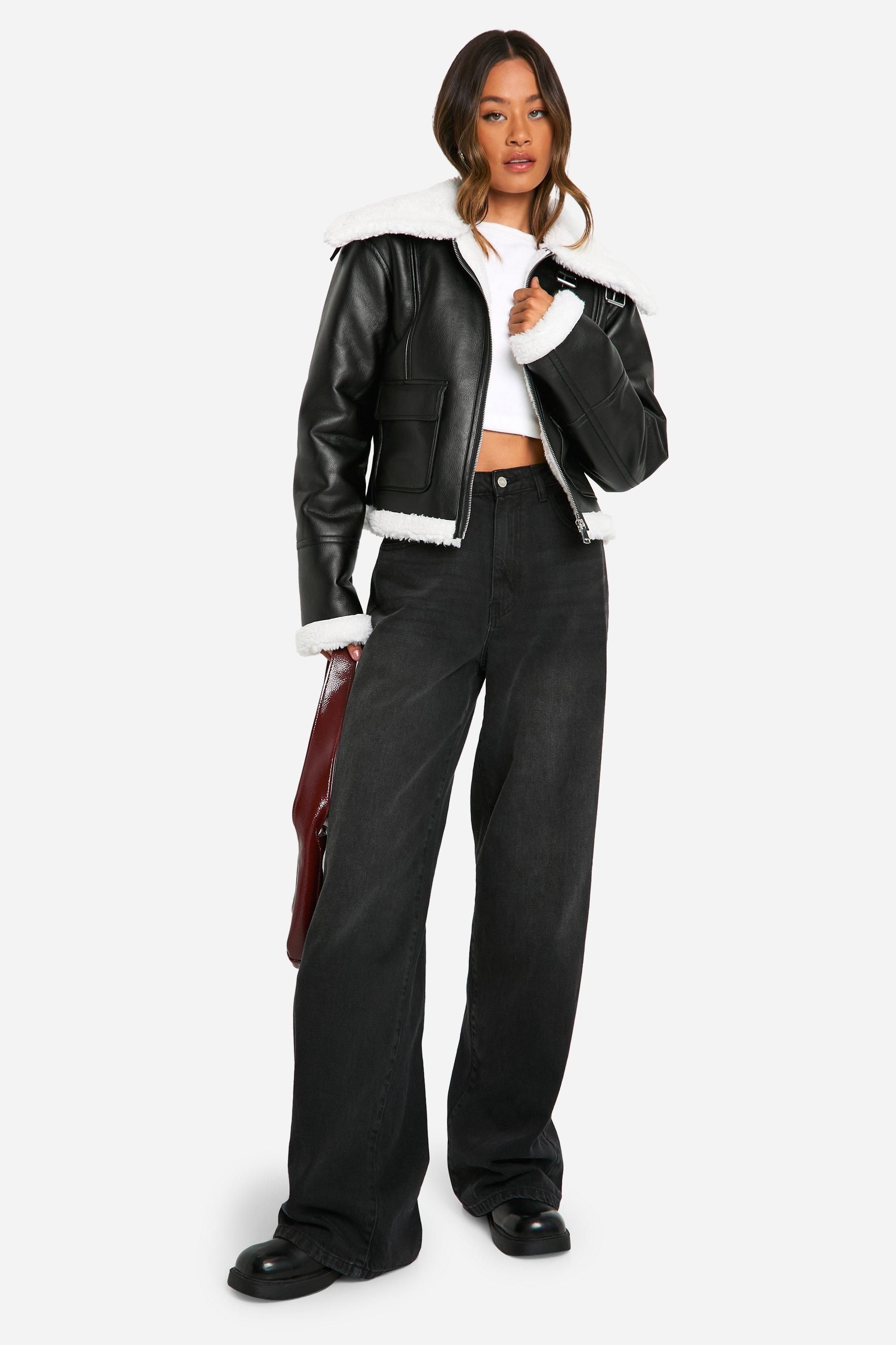 - Cropped length perfect for layering Make a bold statement with this edgy faux leather jacket, designed to keep you stylish and cosy throughout the cooler months. The contrasting faux fur lining adds a luxurious touch while providing essential warmth. Perfect for casual outings, this versatile piece can be dressed up or down with ease. Pair it with wide-leg trousers and chunky trainers for a trendy daytime look, or throw it over a mini dress and ankle boots for a night out with friends. The cropped silhouette is ideal for showcasing high-waisted bottoms, making it a must-have addition to your autumn and winter wardrobe. Whether you're heading to a family gathering or a casual coffee date, this jacket will ensure you're always on-trend and ready for whatever the day brings.