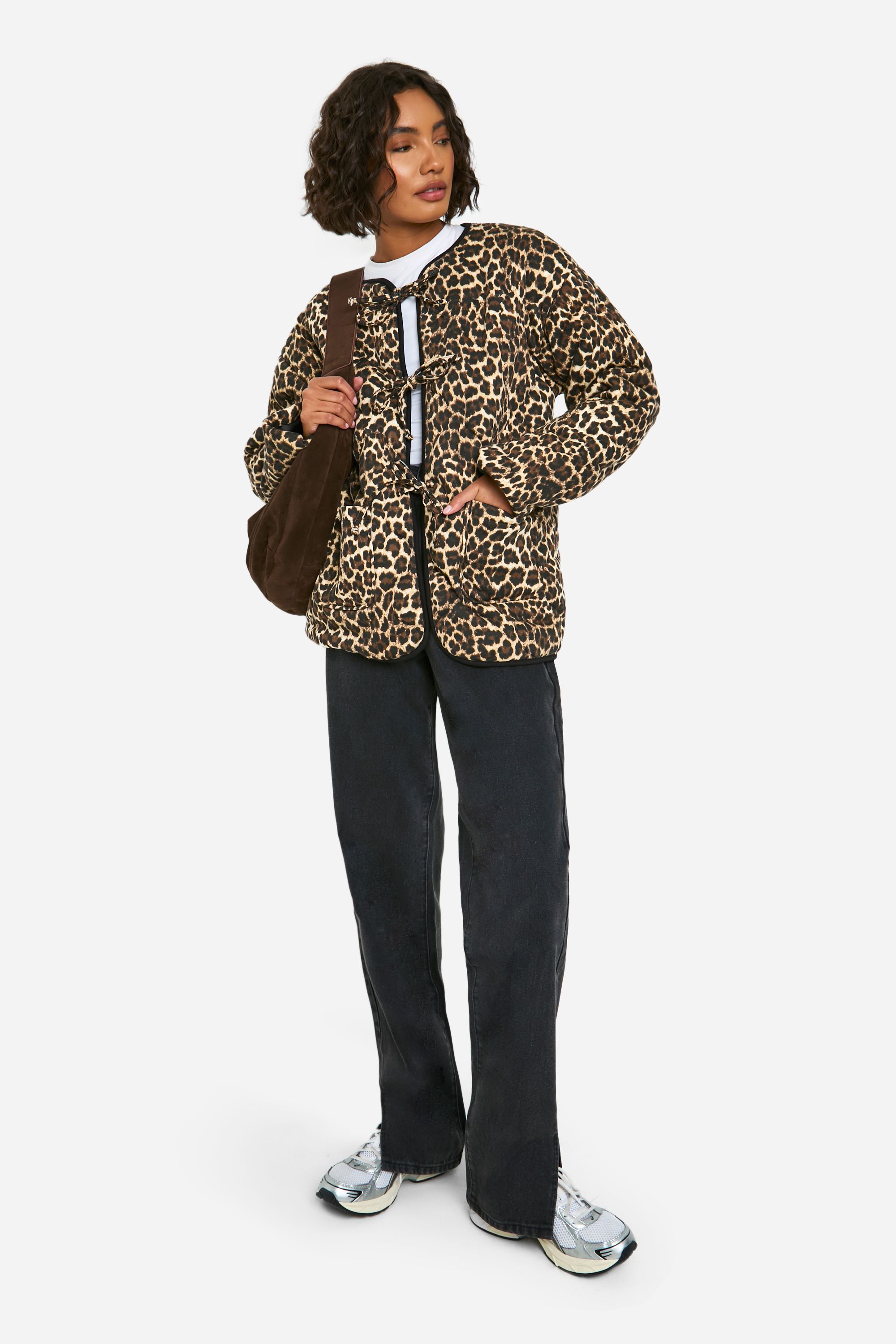 • Tall sizing for a perfect length Make a bold statement with this striking leopard print bomber jacket. The relaxed silhouette offers a contemporary twist on a classic style, while the unique front tie closure adds an edgy detail. Perfect for those who want to stand out from the crowd, this jacket is versatile enough for various casual occasions. Style it with a crisp white tee and high-waisted jeans for a chic daytime look, or throw it over a little black dress for a night out with friends. The tall sizing ensures a flattering fit for those with longer torsos. Whether you're heading to a family gathering or a casual coffee date, this bomber jacket will keep you on-trend and comfortable. Pair it with trainers for a laid-back vibe or dress it up with ankle boots for a more polished ensemble. This Boohoo piece is sure to become a go-to in your wardrobe, offering both style and practicality for the fashion-forward woman.