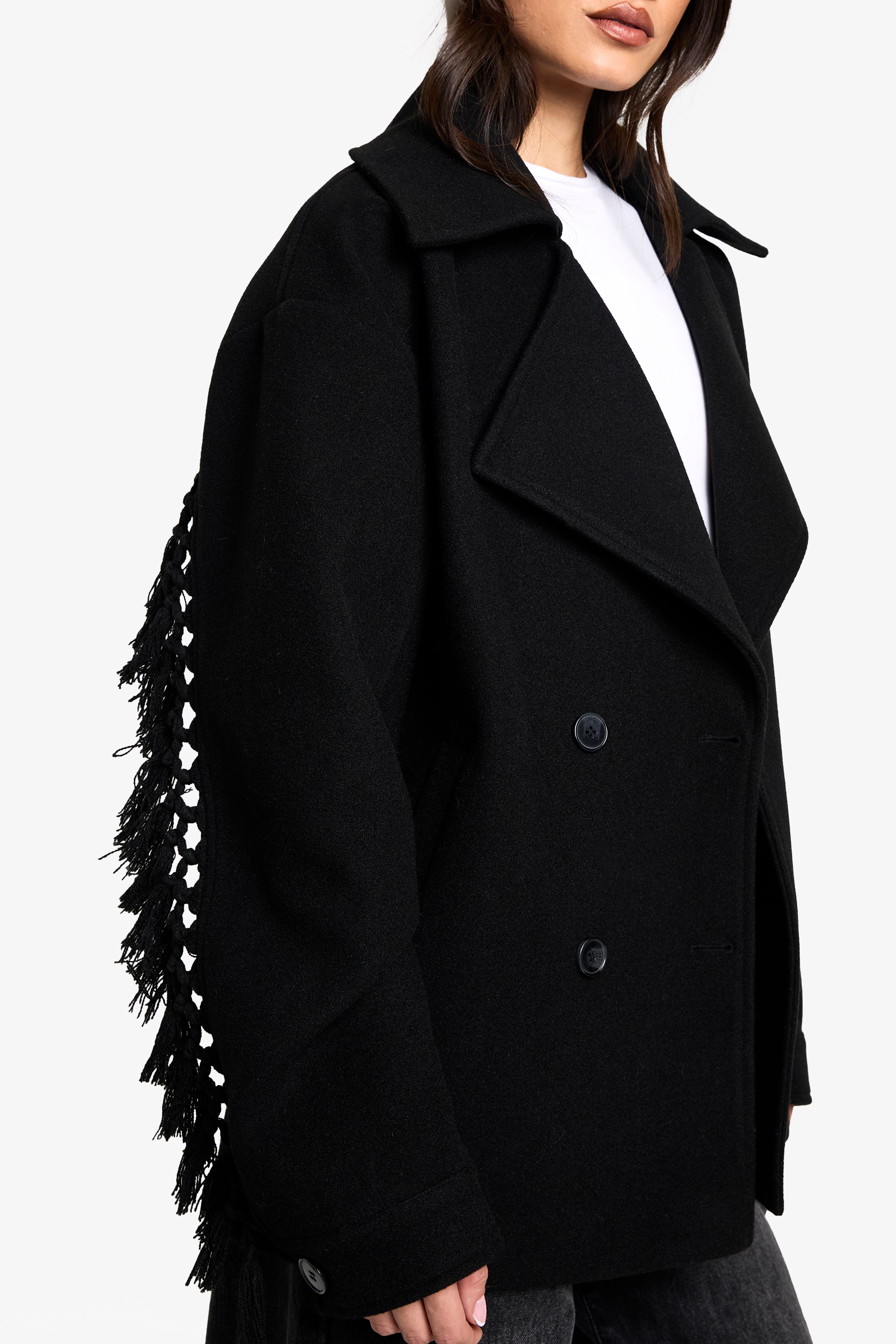 Tall Tassel Detail Wool Look Jacket