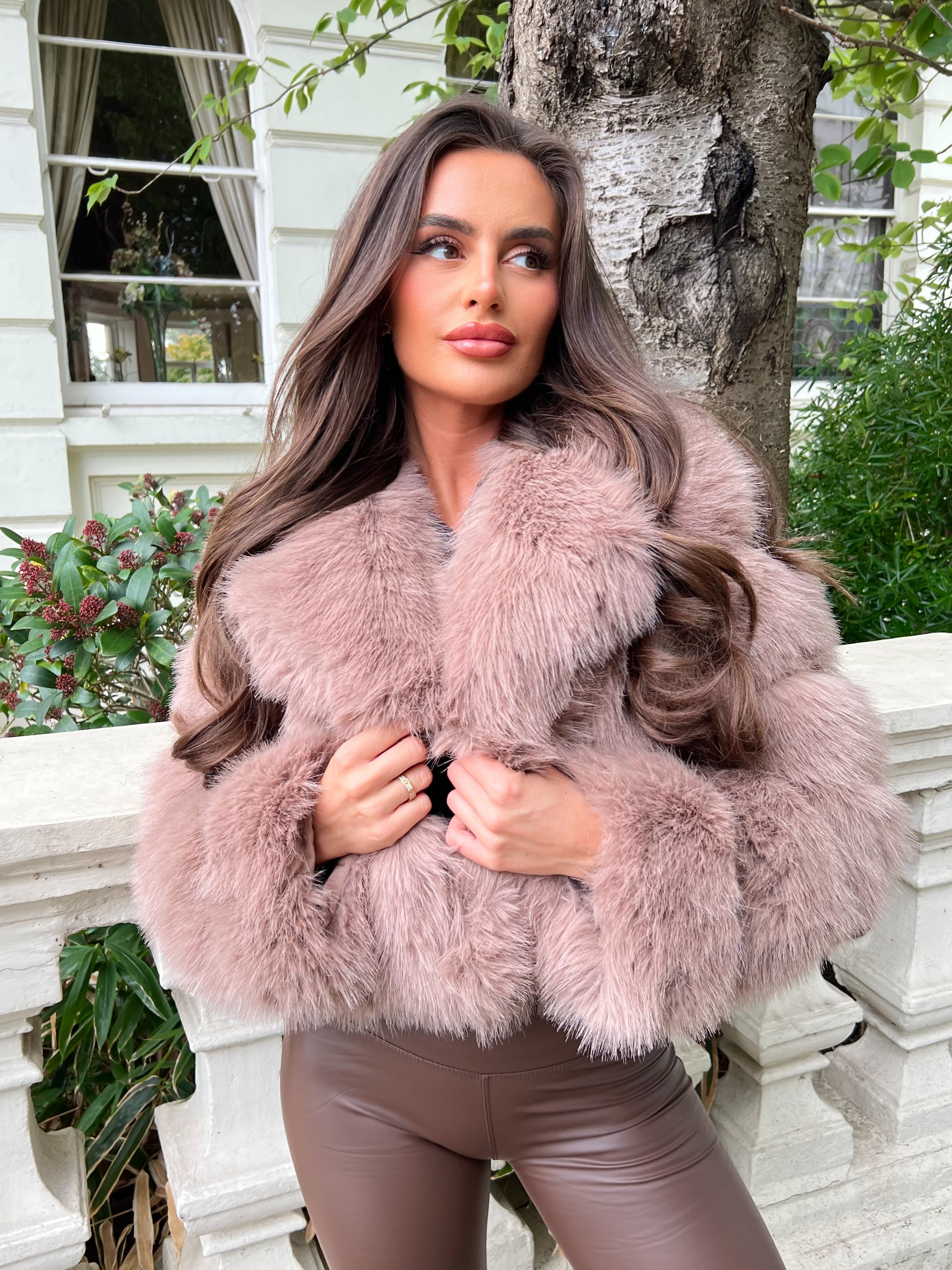 Taupe Premium Faux Fur Collared Jacket