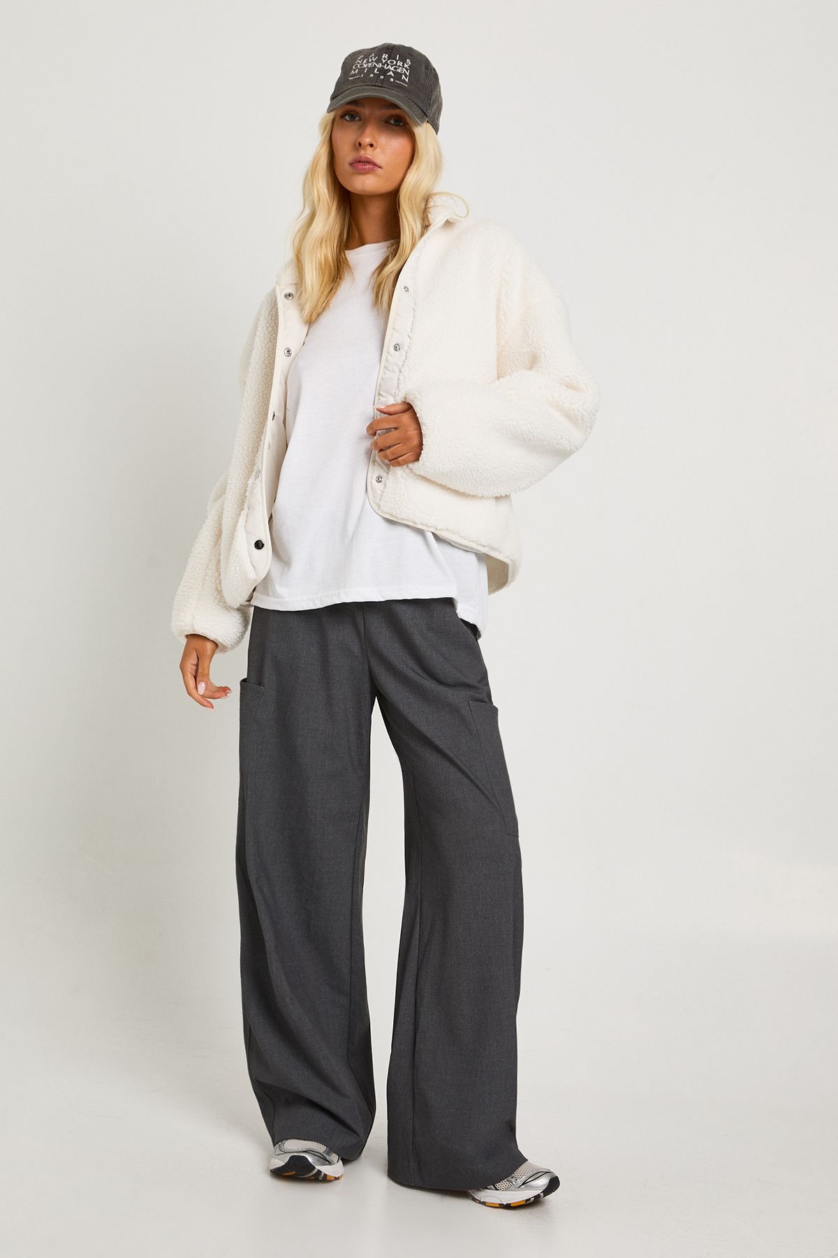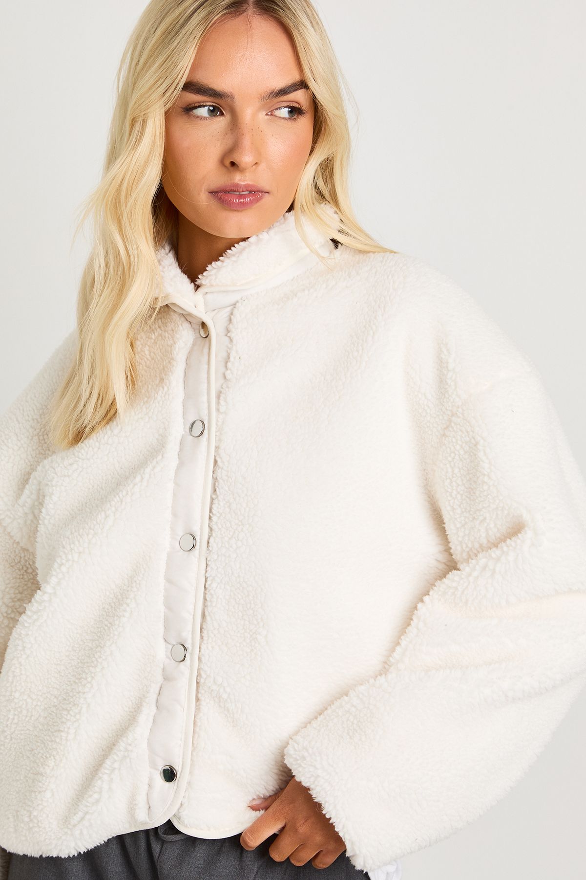 • This cosy teddy jacket brings casual style to chilly days with its soft, textured finish and relaxed fit. The button-up design offers versatility-wear fully fastened for maximum warmth or open over a basic tee for a laid-back look. Style with wide-leg trousers and trainers for weekend coffee runs, or throw over a hoodie with jeans for family gatherings. The cropped silhouette pairs beautifully with high-waisted bottoms, creating a balanced silhouette. For a complete casual ensemble, add a cap and your favourite white trainers. This Boohoo staple transitions seamlessly from autumn walks to winter layering, making it an essential addition to your casual wardrobe that works for multiple seasons.