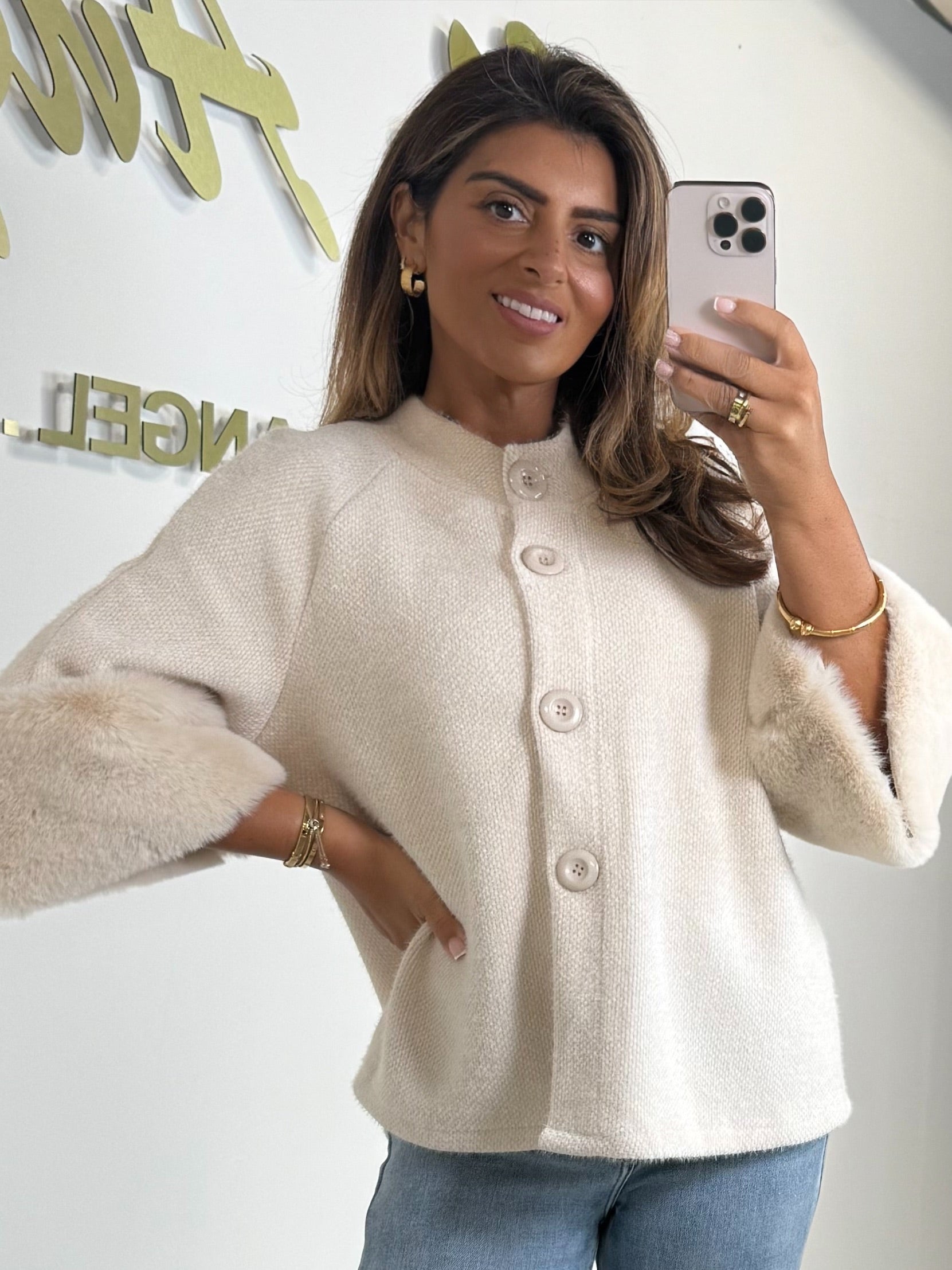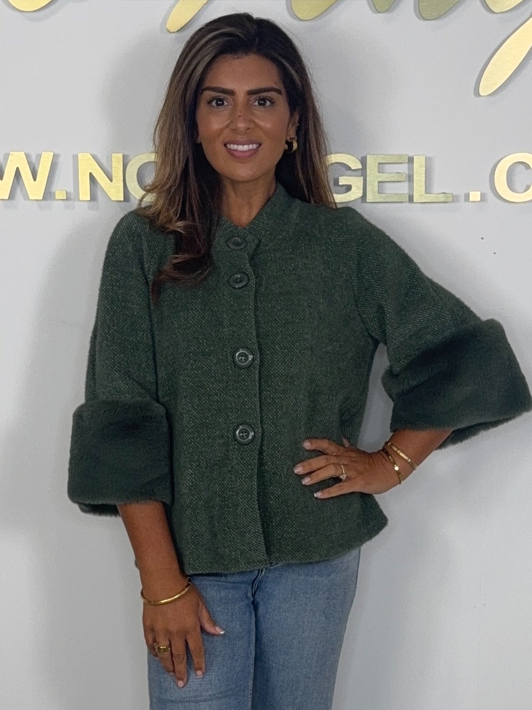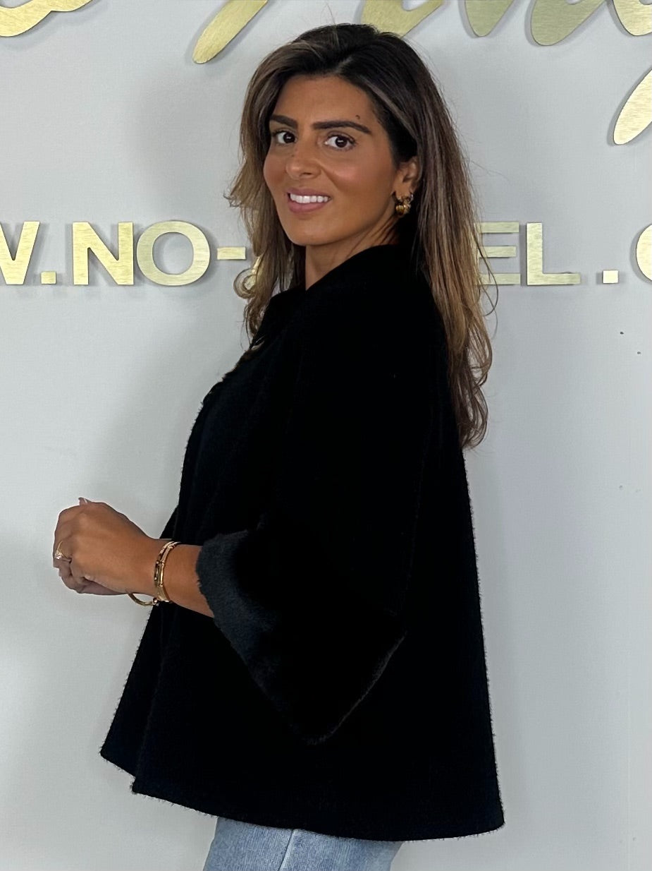 • Textured Faux Fur Cuff Sleeve Cape Style Jacket (7 Colours)