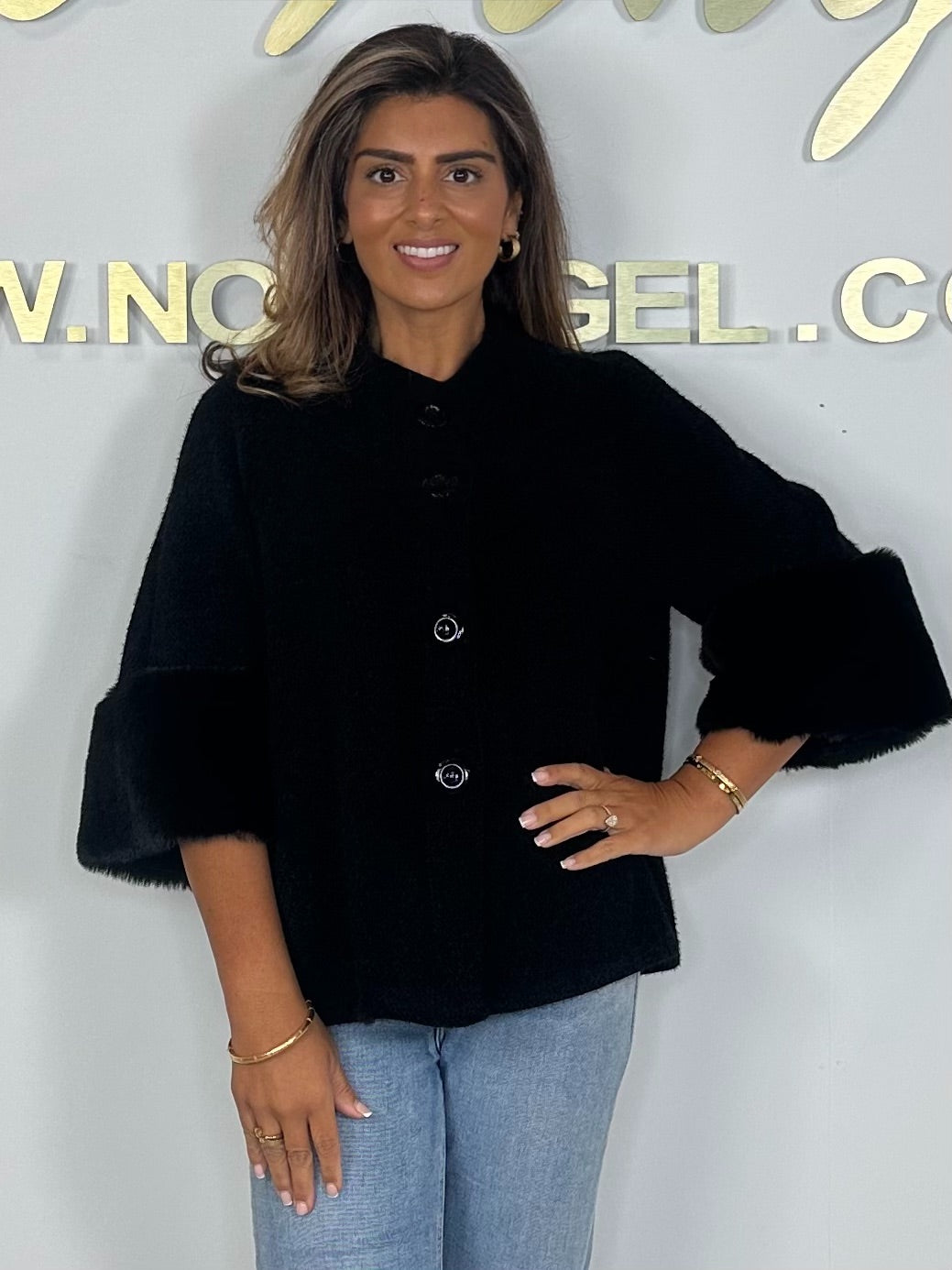 Textured Faux Fur Cuff Sleeve Cape Style Jacket (7 Colours)