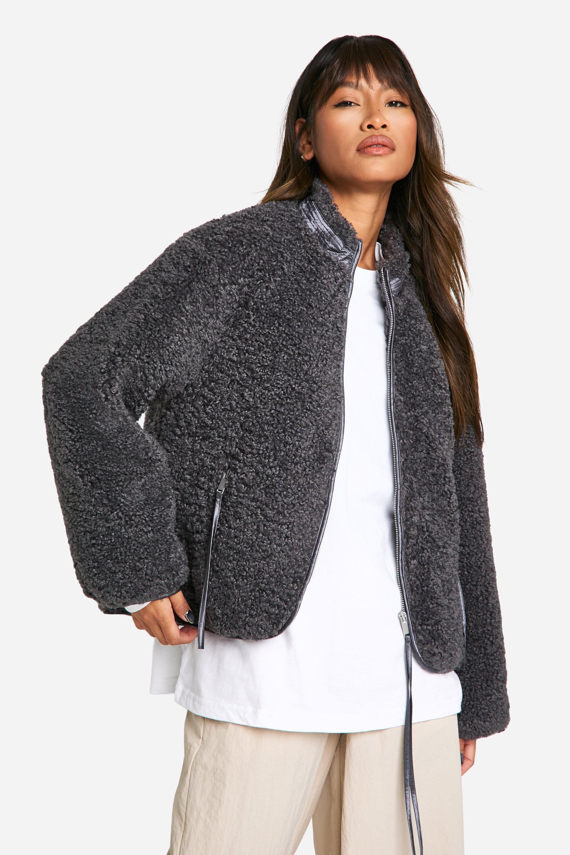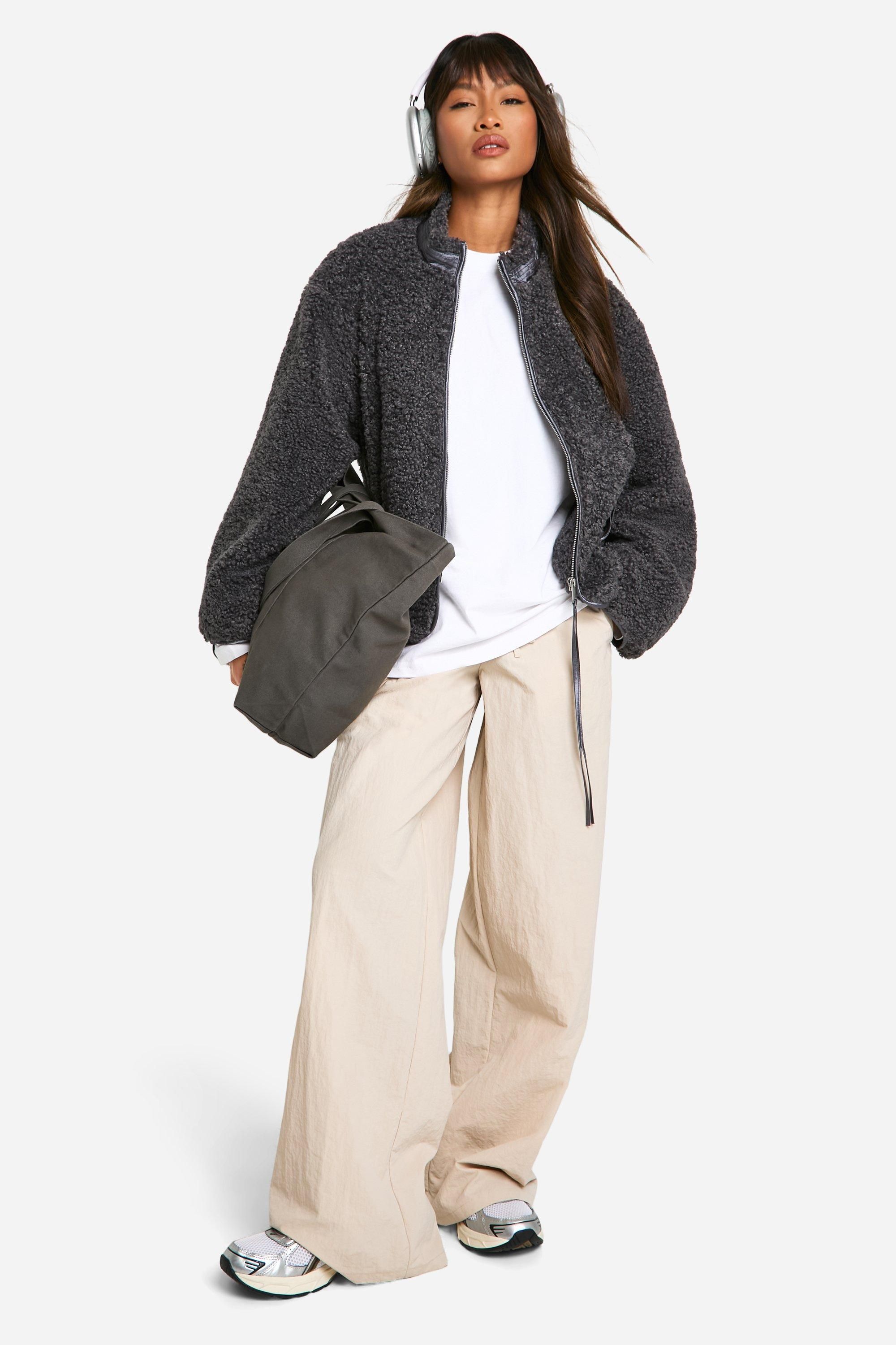 - Embrace the chilly season with this trendy and comfortable teddy jacket. The textured borg fabric not only provides exceptional warmth but also adds a fashionable touch to your ensemble. Its relaxed, oversized silhouette allows for easy layering over your favourite jumpers or long-sleeved tops. The funnel collar offers extra protection against the elements, making it perfect for those blustery autumn days. Style this jacket with wide-leg trousers and trainers for a laid-back weekend look, or throw it over a midi dress and ankle boots for a cosy yet chic outfit. Whether you're heading to a casual family gathering or running errands around town, this versatile piece will keep you looking stylish and feeling snug all day long.