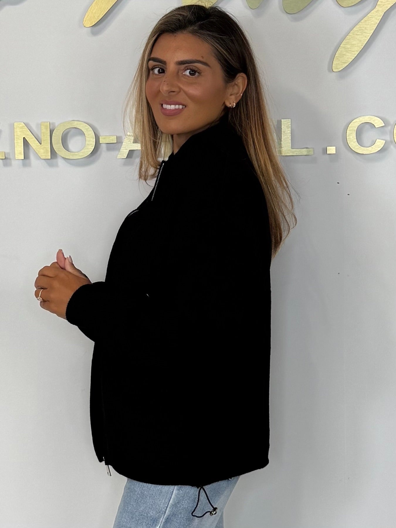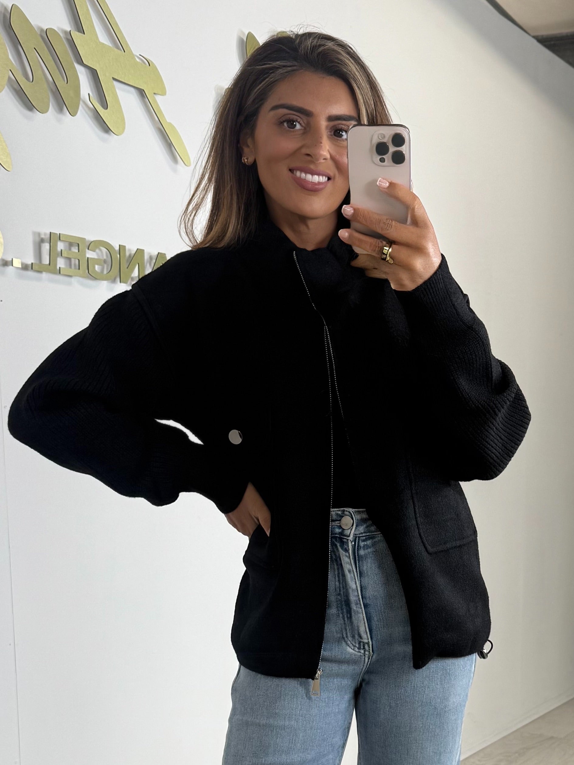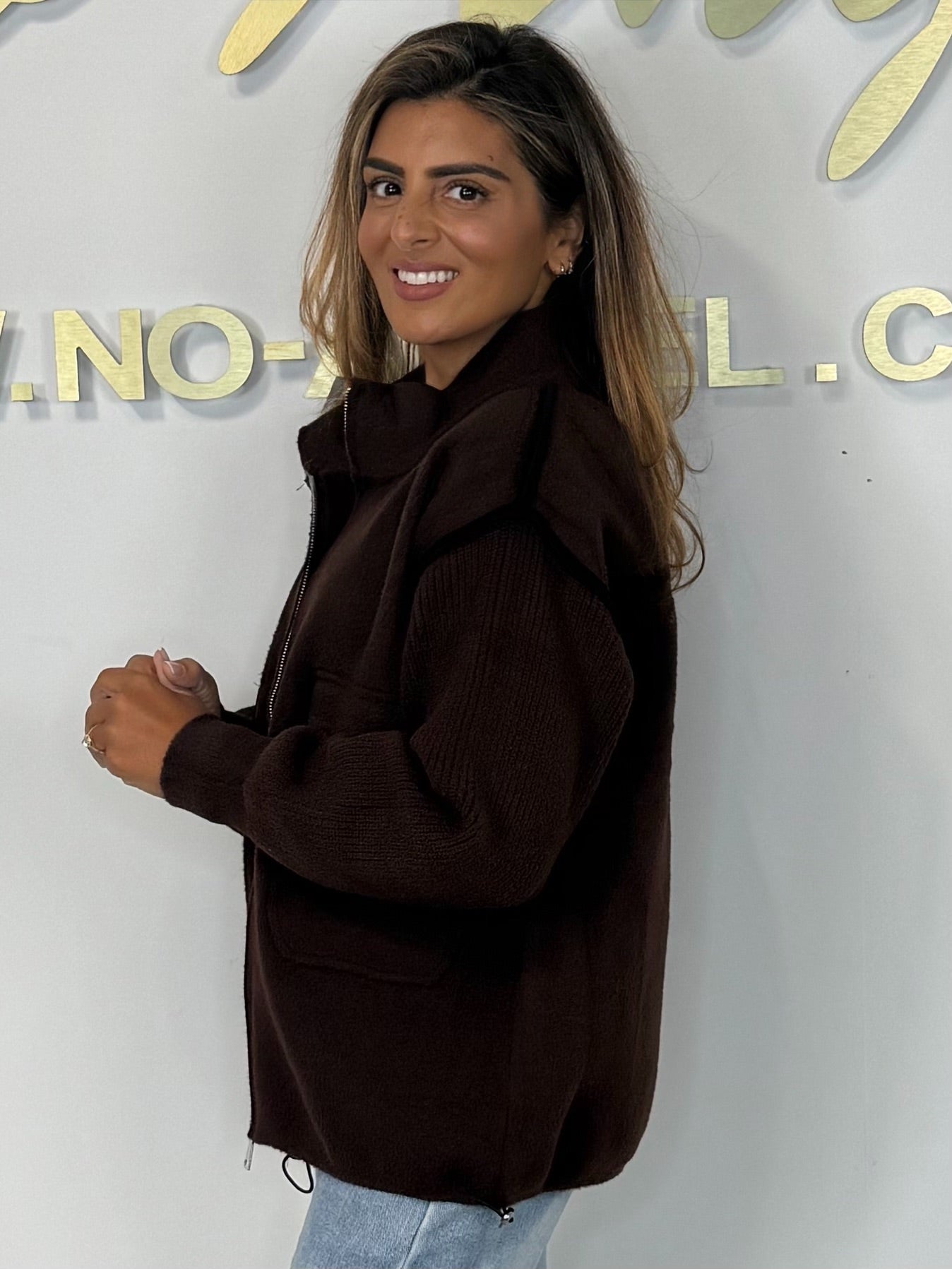 Thick Knit Pocket Detail Funnel Drawstring Bottom Jacket