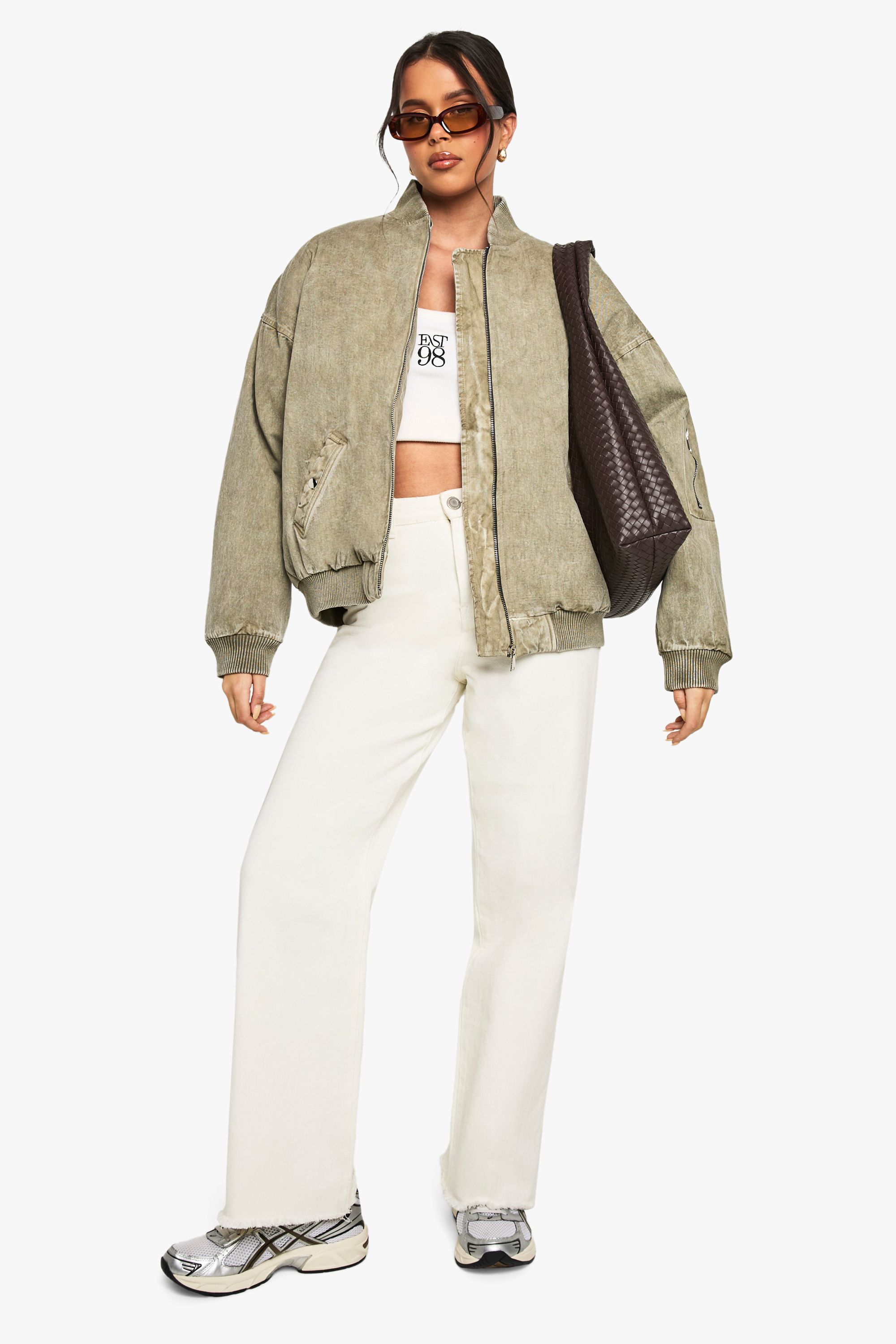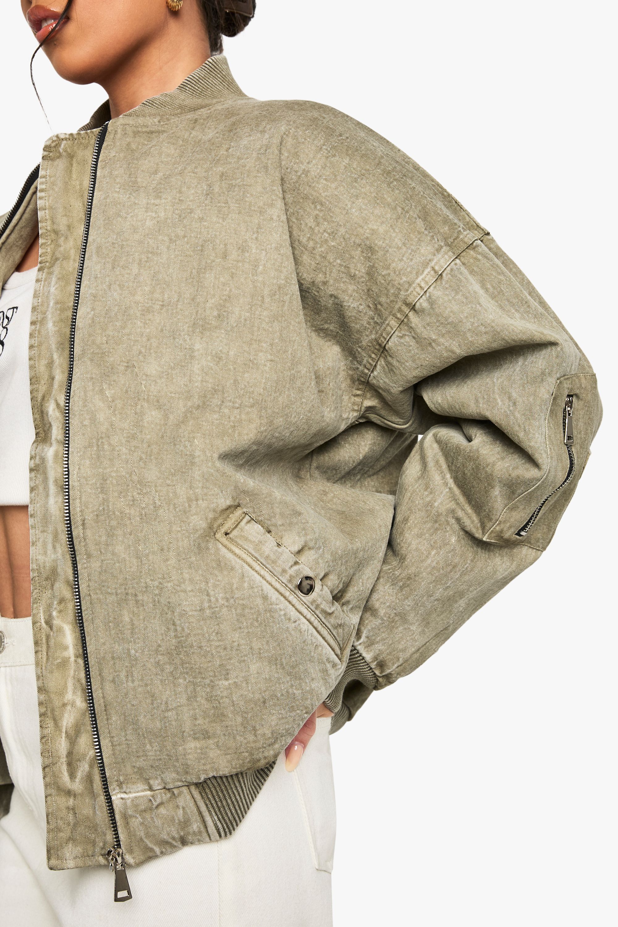- Dropped shoulders and roomy fit for a relaxed, on-trend look Make a bold statement with this oversized bomber jacket that combines comfort with street-style edge. The wool-like texture adds a luxe touch to this casual essential, perfect for layering over your favourite outfits. Style it with wide-leg trousers and trainers for a relaxed daytime look, or throw it over a midi dress and ankle boots for an evening out with friends. The versatile design makes it ideal for various casual occasions, from weekend brunches to laid-back gatherings. The roomy fit allows for easy layering over jumpers during cooler months, while the zip-through front offers adaptability for changing temperatures. Embrace the oversized trend and let this bomber jacket become your go-to piece for effortless, fashion-forward dressing.